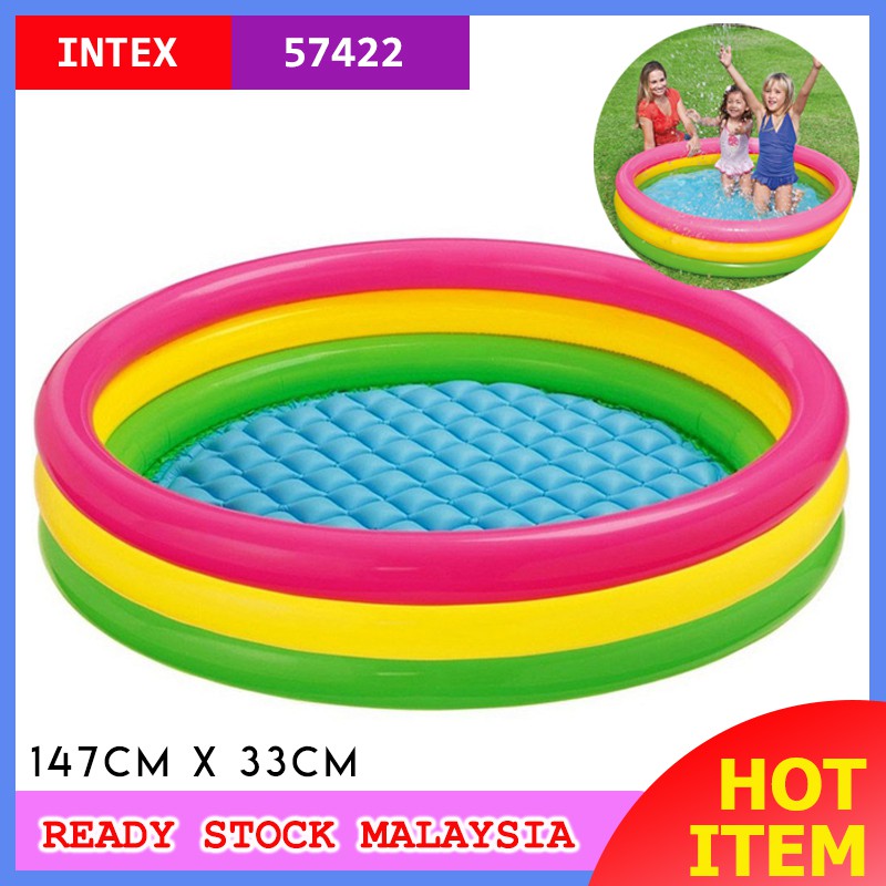 INTEX 57422 (NP34) Sunset Glow Three Rings Soft Inflatable Floor Portable Swimming Pool for Kids Kolam Mandi(147 x 33cm)