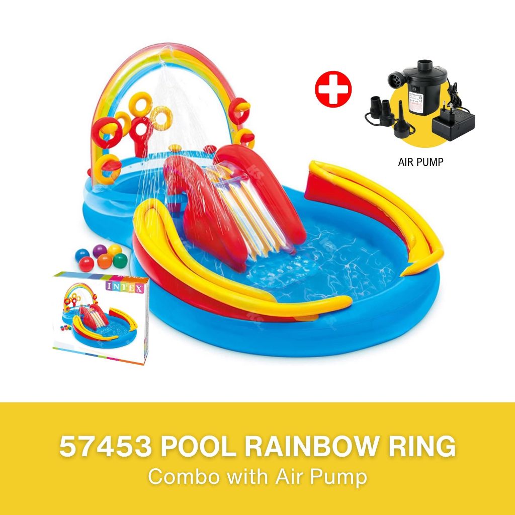 INTEX 57453 Rainbow Inflatable Swimming Pool for Kids Water Slide Children Fountain Sprinkler Kolam Mandi Mainan Budak