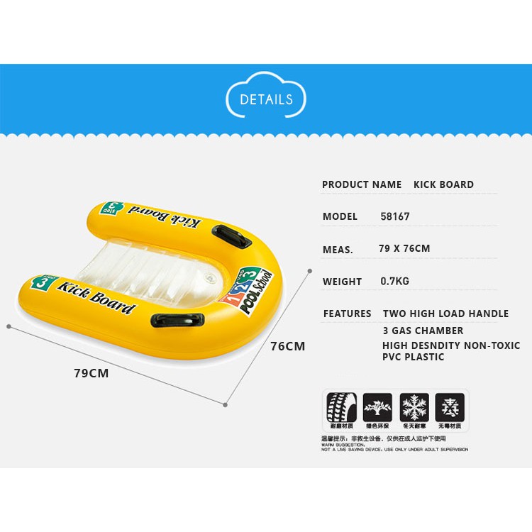 INTEX 58167 (NP16) Pool School Step 3 Deluxe Inflatable Swimming Kickboard Float For Kids