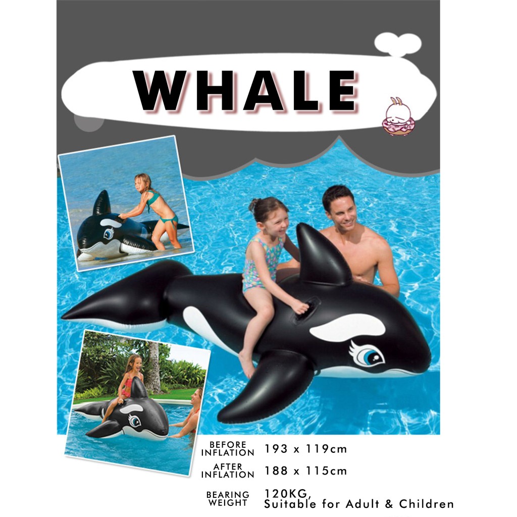 INTEX 58561 (NP35) Whale Ride-On Inflatable Toys Children Swimming Floating Pool Play With Heavy Duty Handle