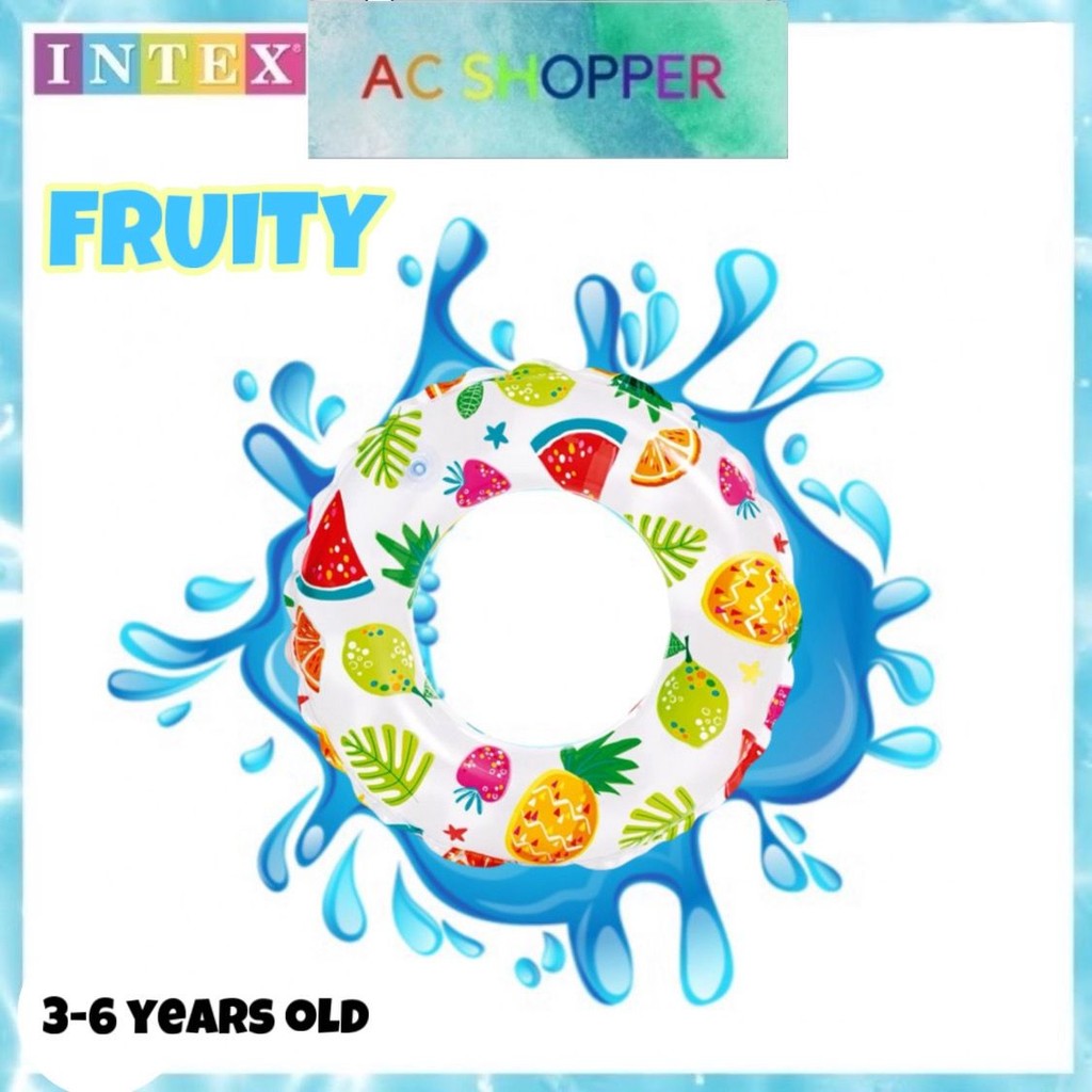 INTEX 59230 Inflatable Float Cartoon Transparent Swimming Pool Rings For Kids Renang /Pelampung 51cm 3-6 years