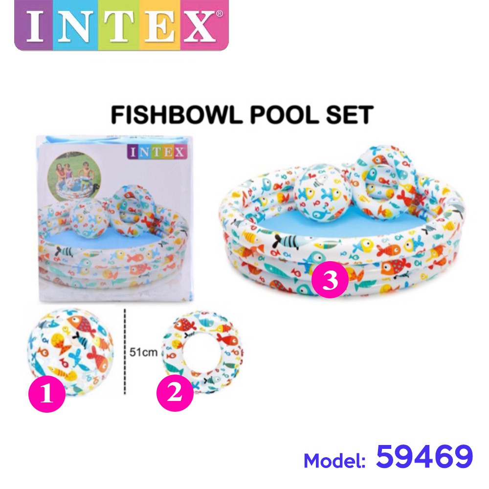 INTEX 59469 Fish Bowl Pool 3 Ring Inflatable Swimming Pool Set for Baby or Kids With Swim Ring+Beach Ball (132x28cm)