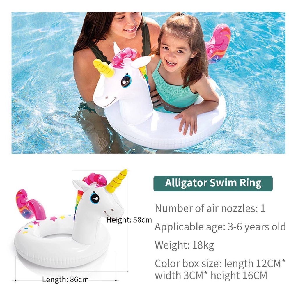 INTEX Pelampung Haiwan Comel Unicorn Inflatable – Gelung Renang 58221 untuk Kanak-Kanak Umur 3-6 Tahun Mainan Air Kolam