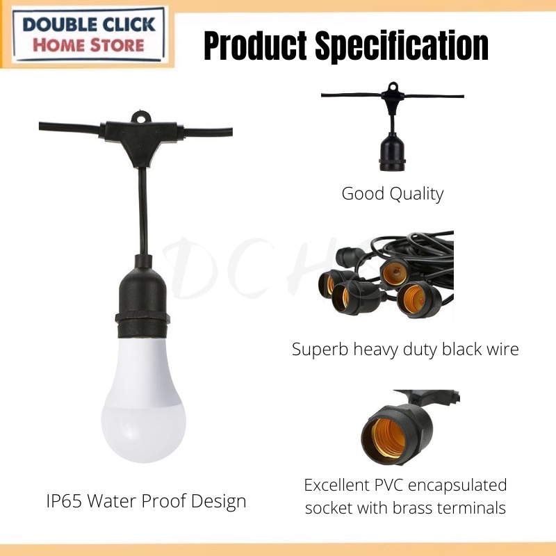 IP65 100Meter x 100pcs E27 5W Led Light Waterproof Outdoor Led String Light Waterproof Outdoor Wire Lamp Holder