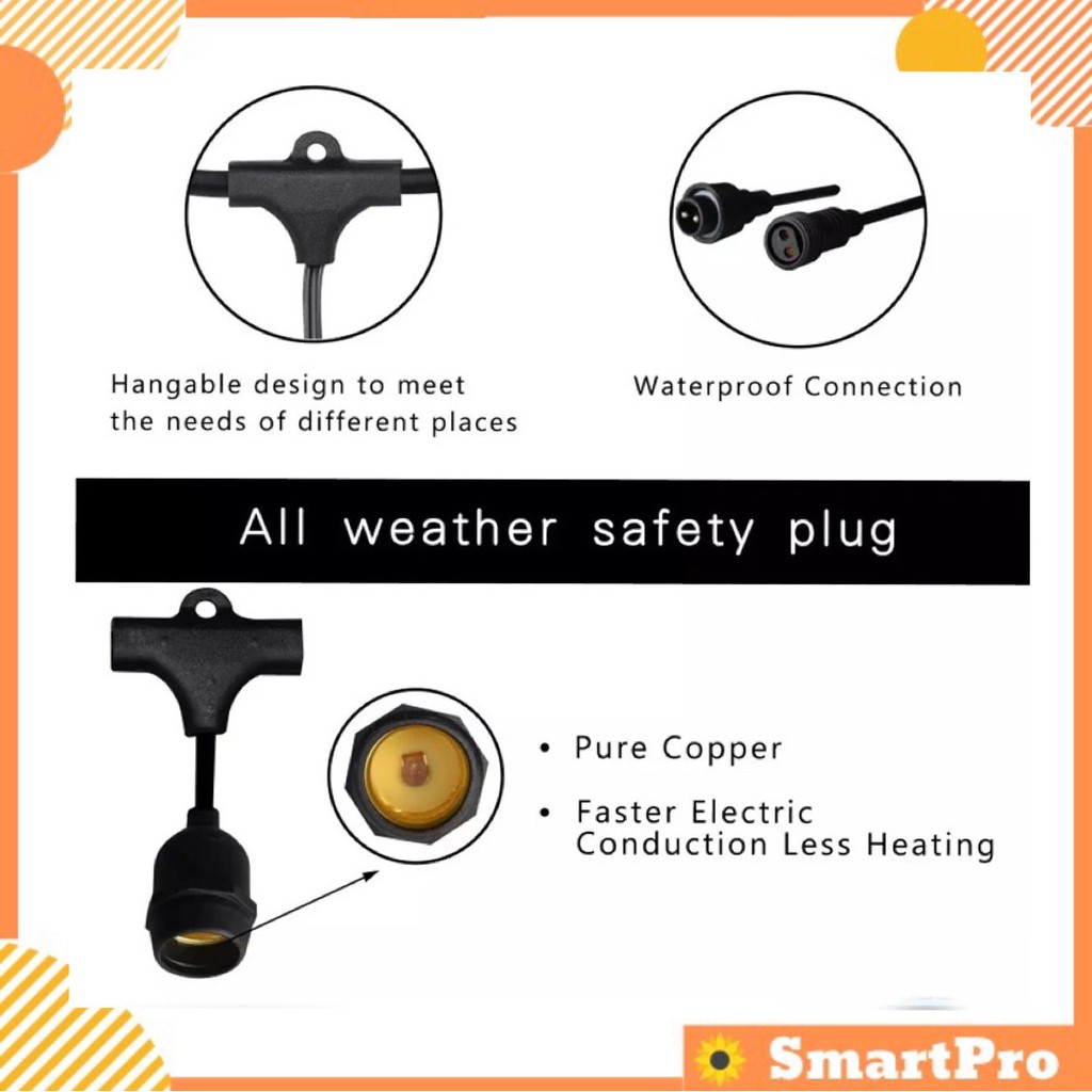 IP65 10MTR E27 Lamp Holder Waterproof Outdoor Led Light Garden Waterproof Flexible Hanging Sockets Led String Light