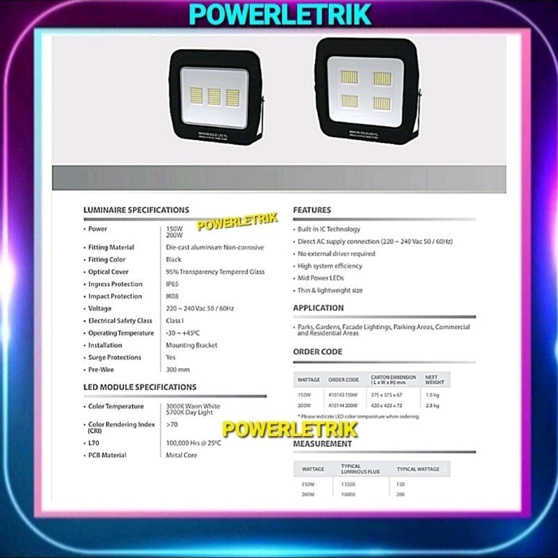 IP65 NIKKON DRACO ZULO 100W 150W 200W LED FLOODLIGHT/SPOTLIGHT WITH SURGE PROTECTION - MADE IN MALAYSIA SIRIM APPROVED
