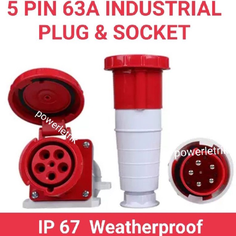 IP67 *WEATHERPROOF* 5 PIN 63A INDUSTRIAL PLUG, WALL SOCKET AND CONNECTOR SOCKET