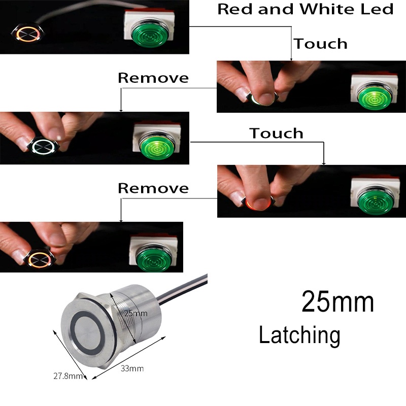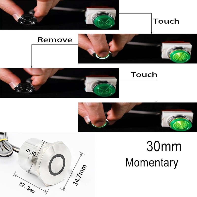 IP68 Touch Switch Electric Waterproof Power 12v Led Light Momentary Induction Button 16/19/22/25/30mm Fix On Off Switches 24v 5v