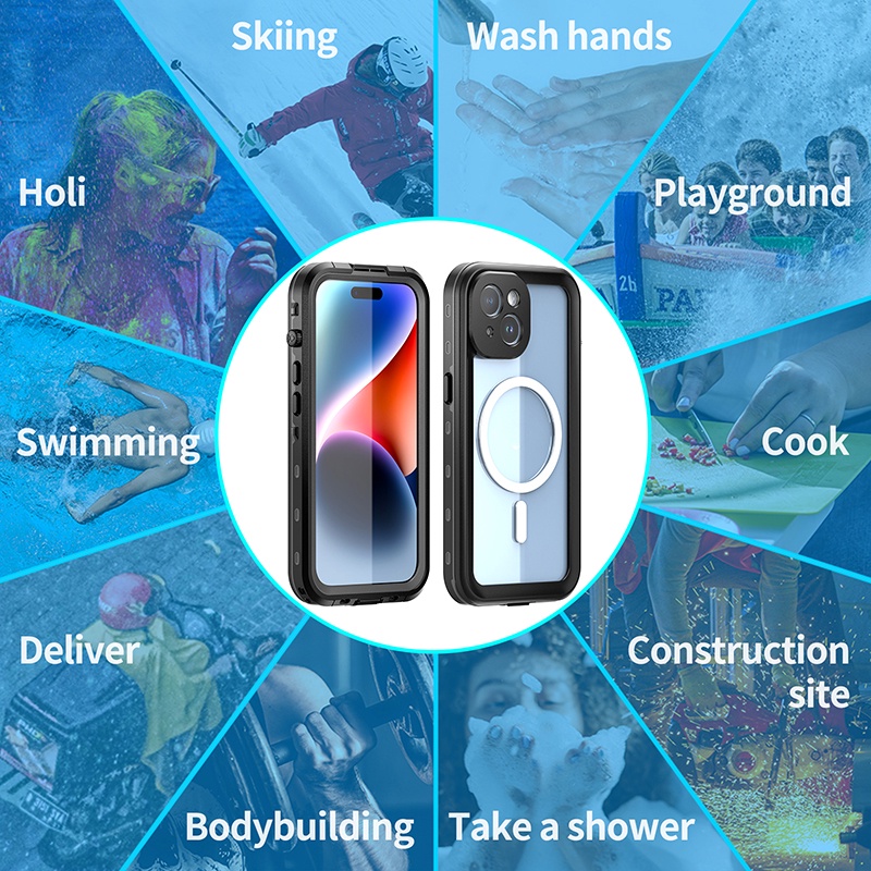 IP68 Waterproof Case Compatible for iPhone 15 14 16 17 Pro Max Plus Water Proof Cases with Magnetic Sheet Underwater 360 Cover Snorkeling Casing