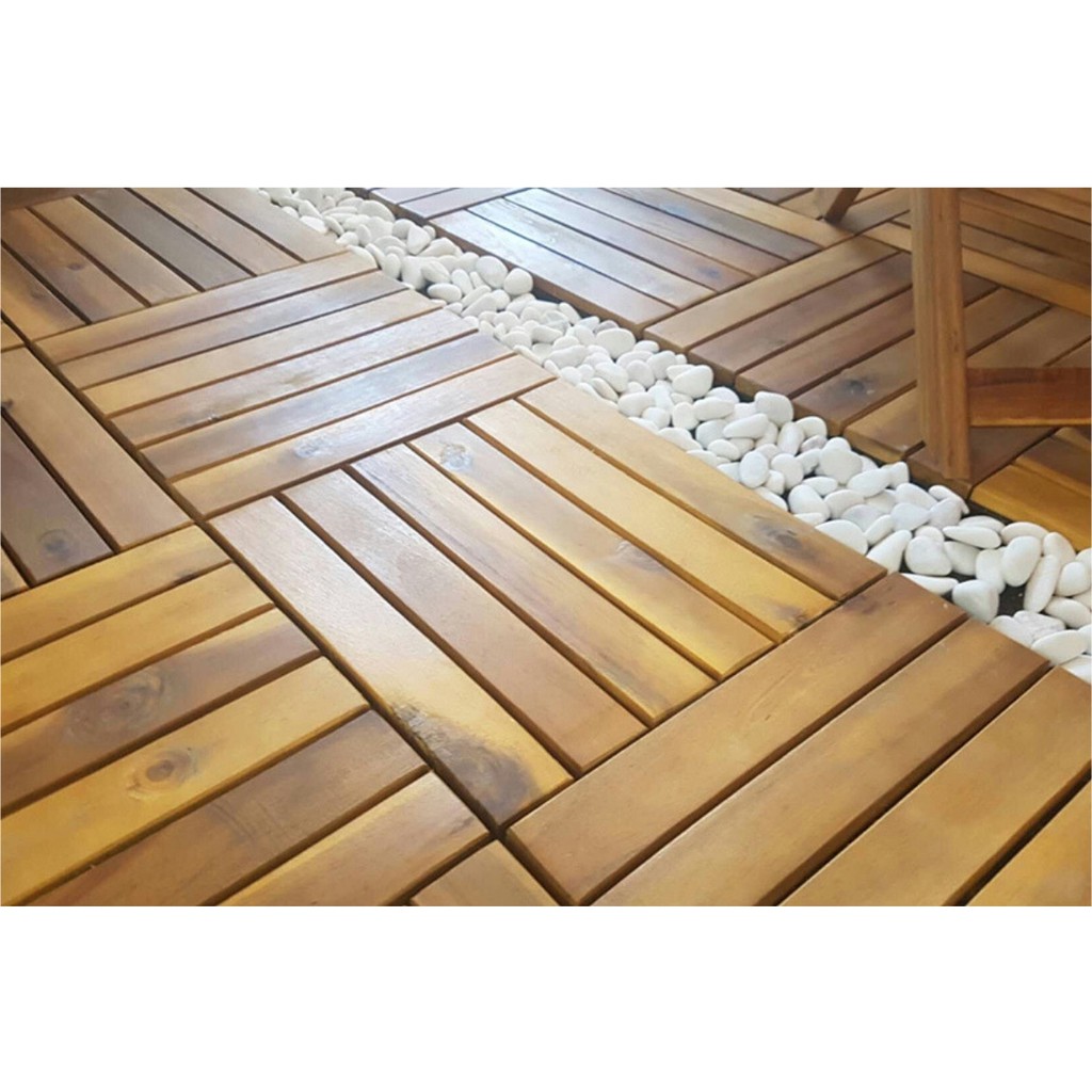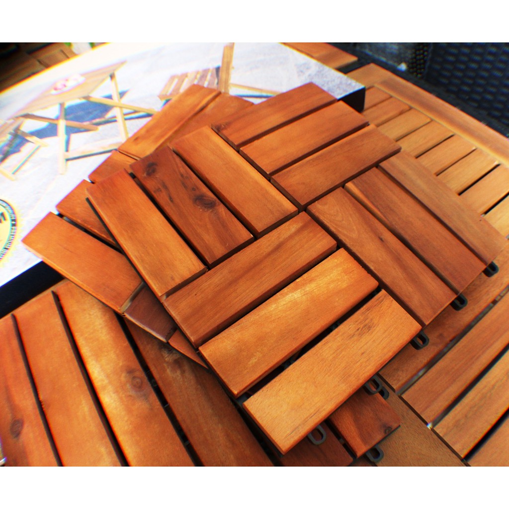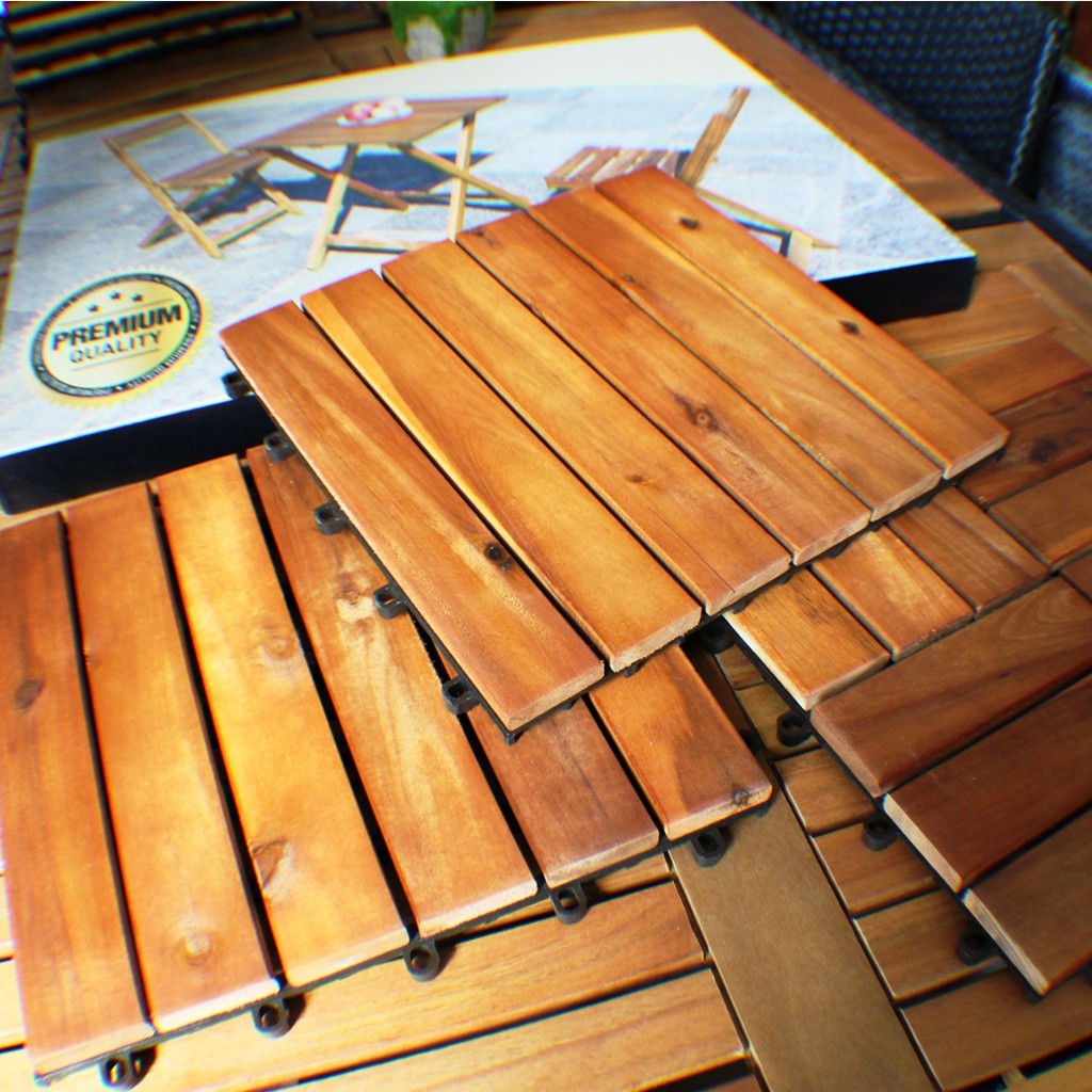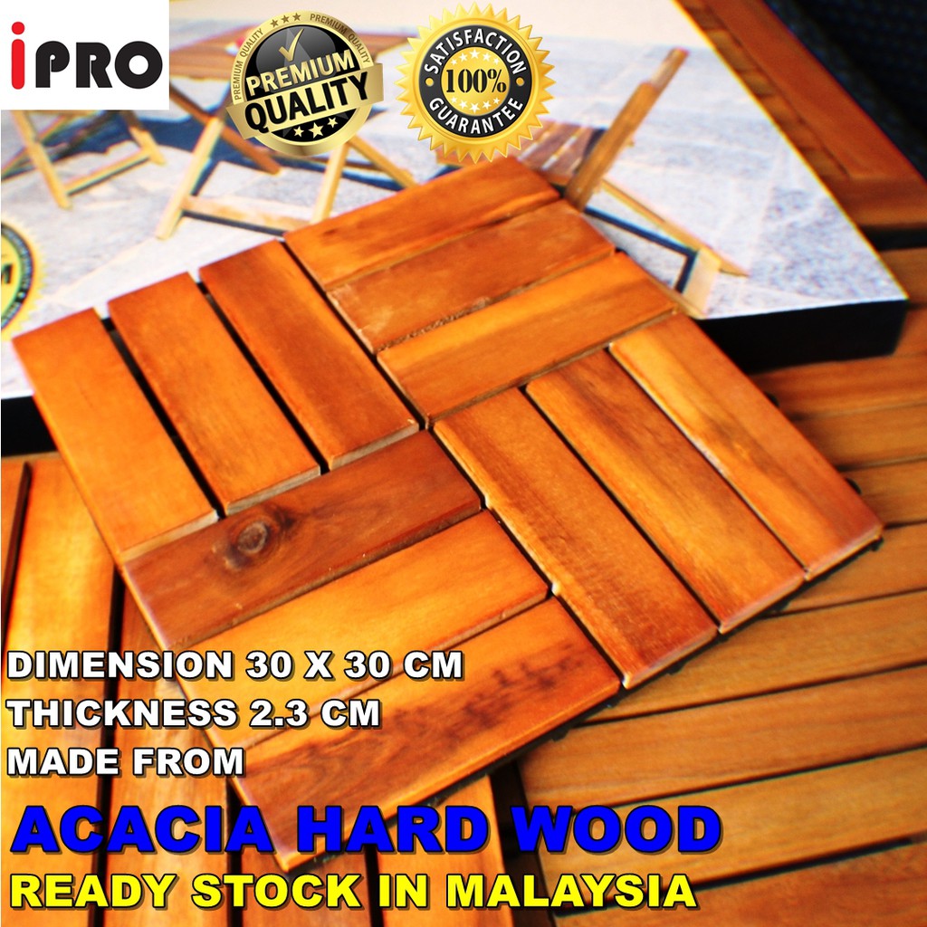 IPRO 9 Pcs Wood Floor Decking DIY Timber Flooring Deck tile Garden Decoration Wood Decktile, Kayu Lantai, Carpet
