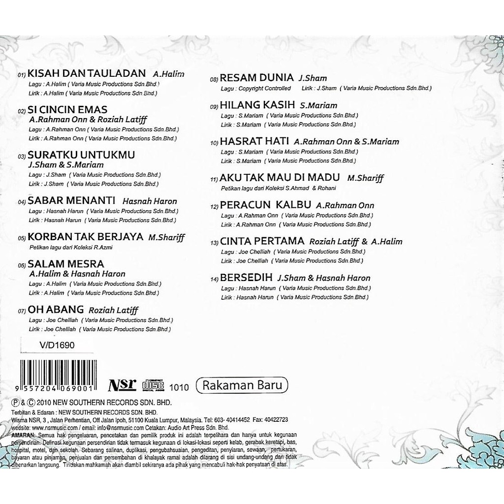 IRAMA 60an - Memori Hitz ( CD ) [ Koleksi E,mas 14 Kompilasi Lagu Lagu Terbaik Dalam 1 Album ]