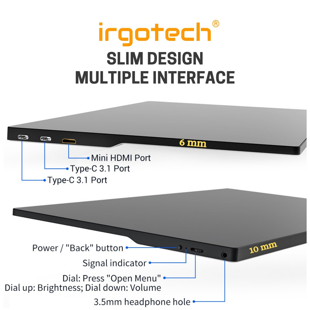IRGOTECH Portable Monitor Touch Screen 15.6 Gaming Monitor HDMI USB C IPS Extended Monitor Laptop PS5 Monitor Portable