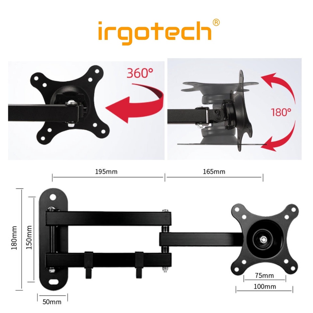 IRGOTECH Monitor Wall Mount Bracket Full Motion Rotate, Swivel, Tilt Monitor 10-27inch VESA compatible Computer Screen