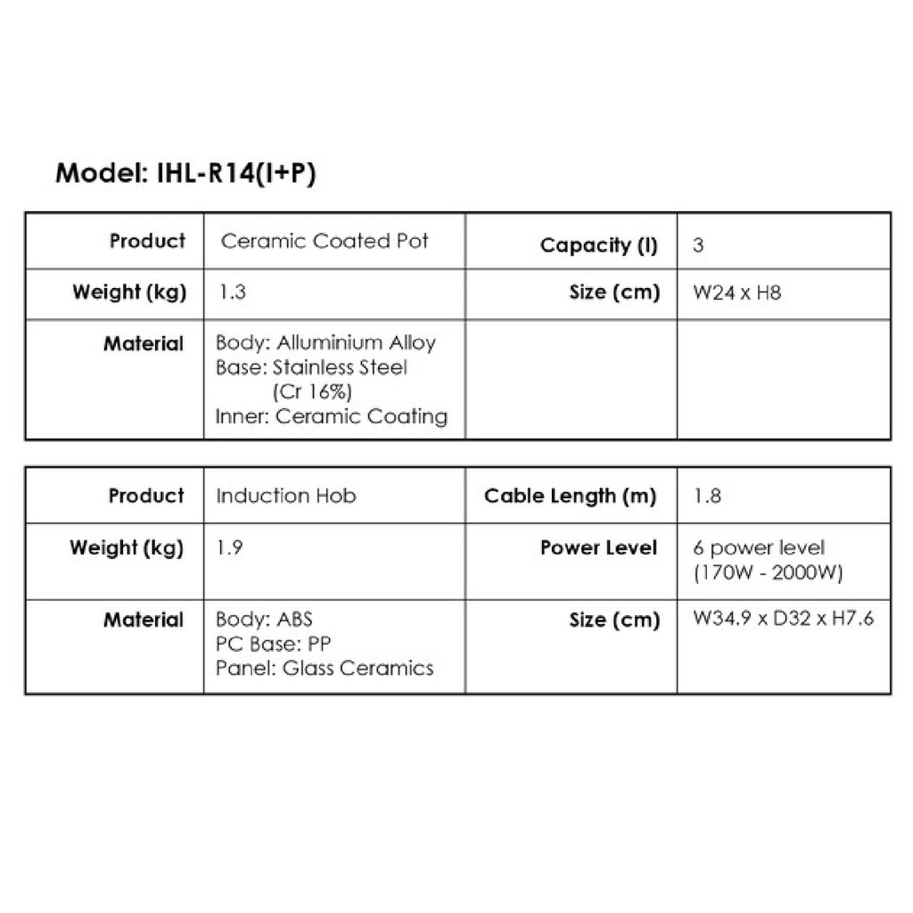 IRIS OHYAMA IHL-R14 Ricopa INDUCTION Cooker Hob + Non-Stick Pot Cookware Pastel Colorful Collection