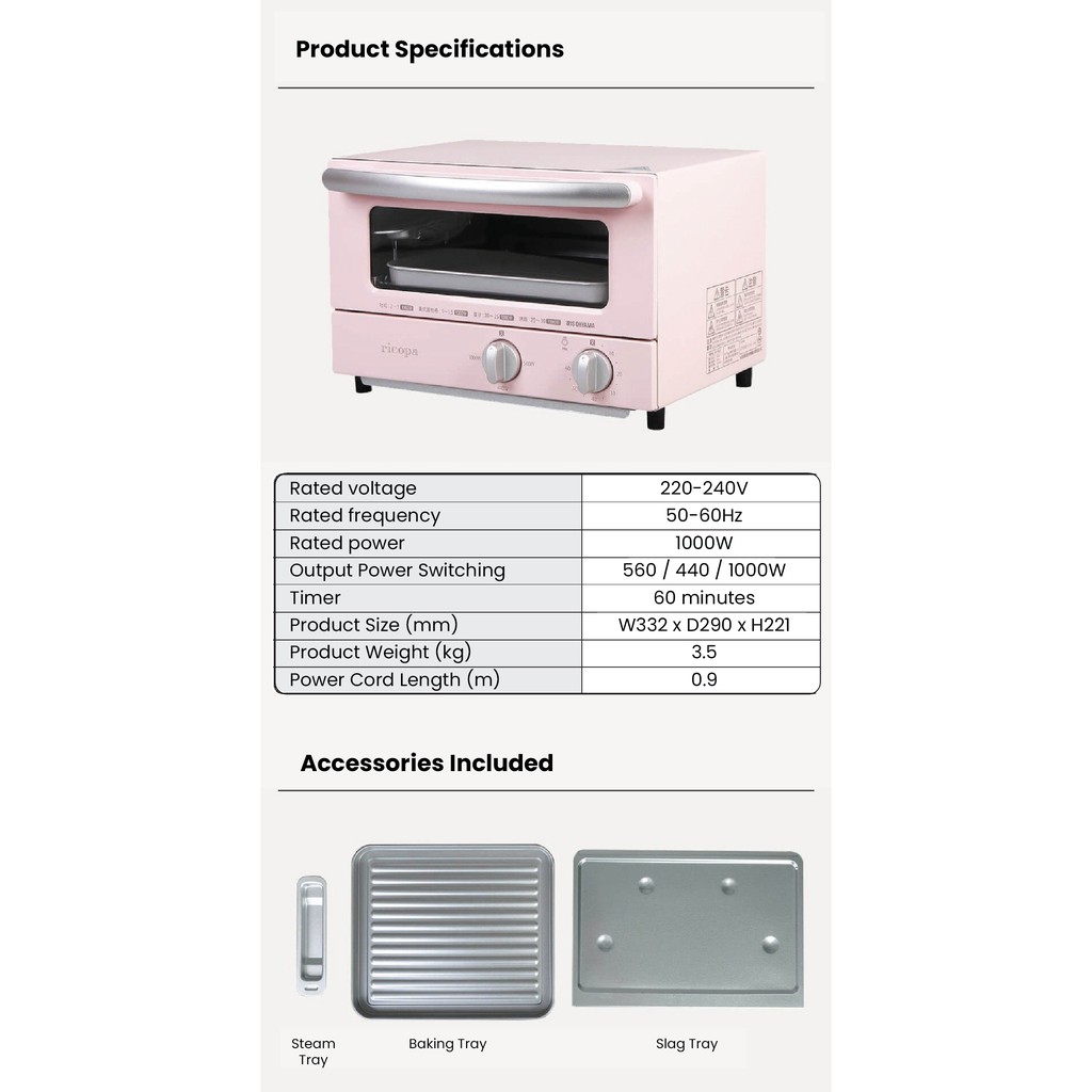 IRIS OHYAMA Multifunction Mini Toaster Oven Steam Bake Tech EOT-R021