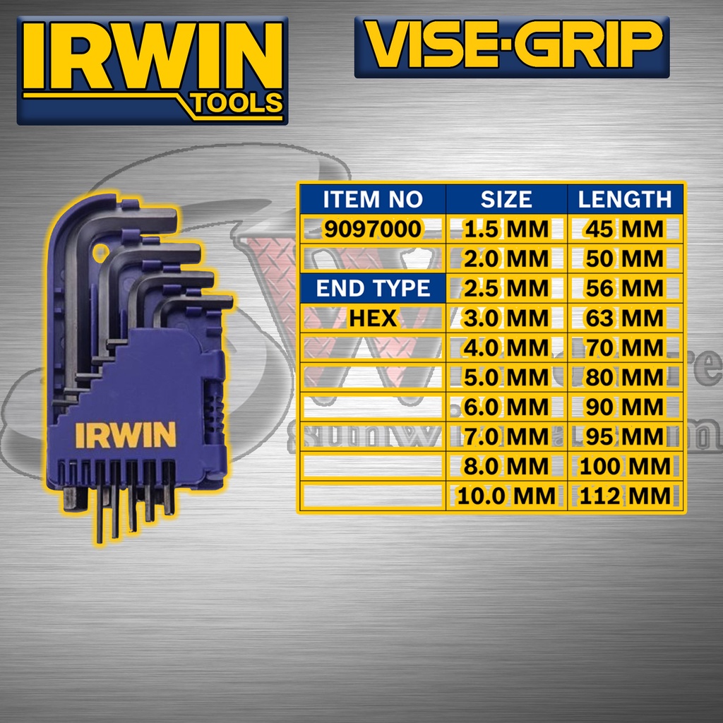IRWIN 10 Pcs Metric Short Arm Hex Key Set #9097000 Allen key Set