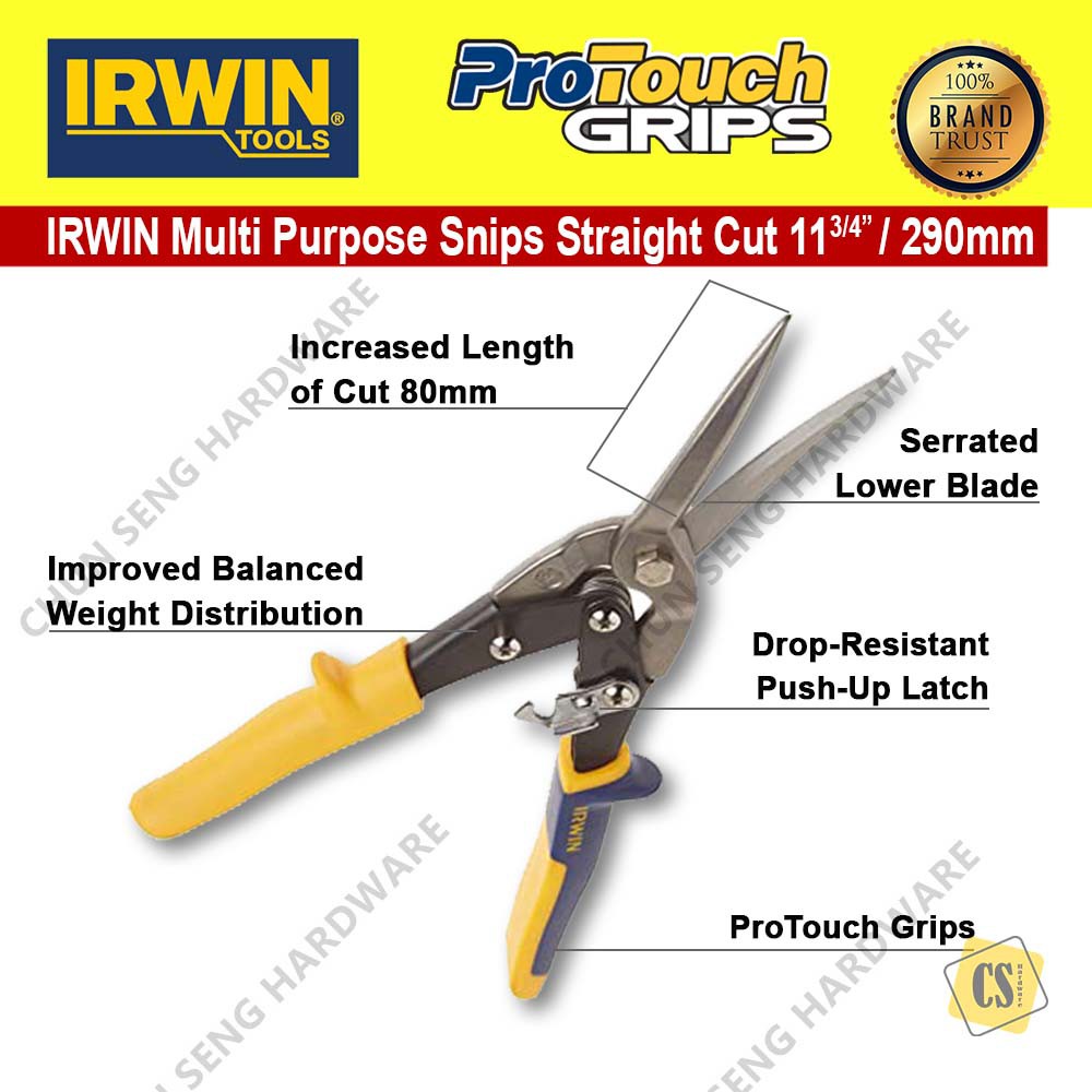 IRWIN Multi Purpose Snip Straight Cutter 11" 300mm Extra Cut Snip Straight Curve Sheet Metal Aluminium Stainless Scissor