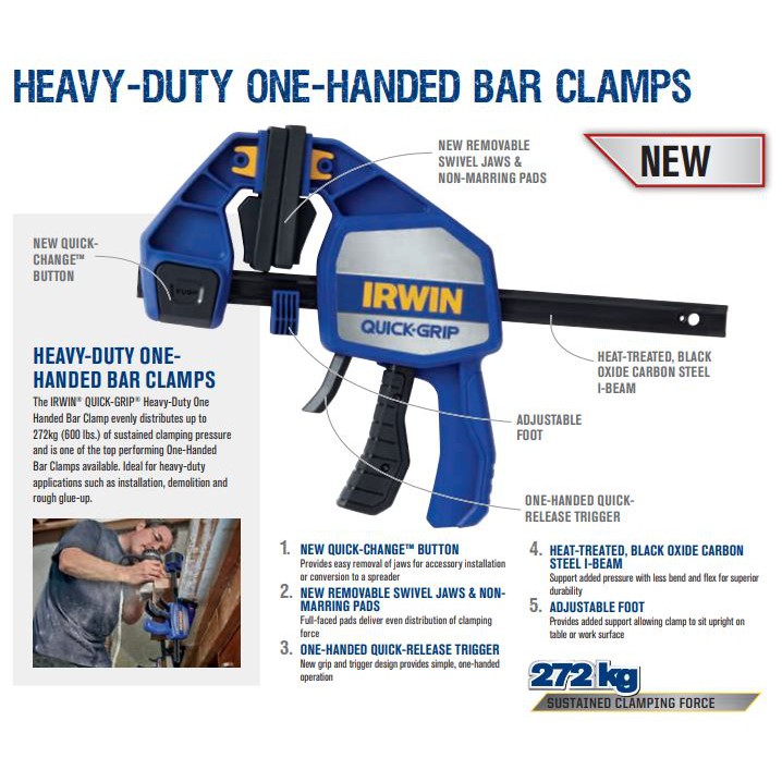 IRWIN QUICK GRIP BAR CLAMP, ONE HANDED BAR CLAMPS - Size 150mm (6") To 900mm (36")