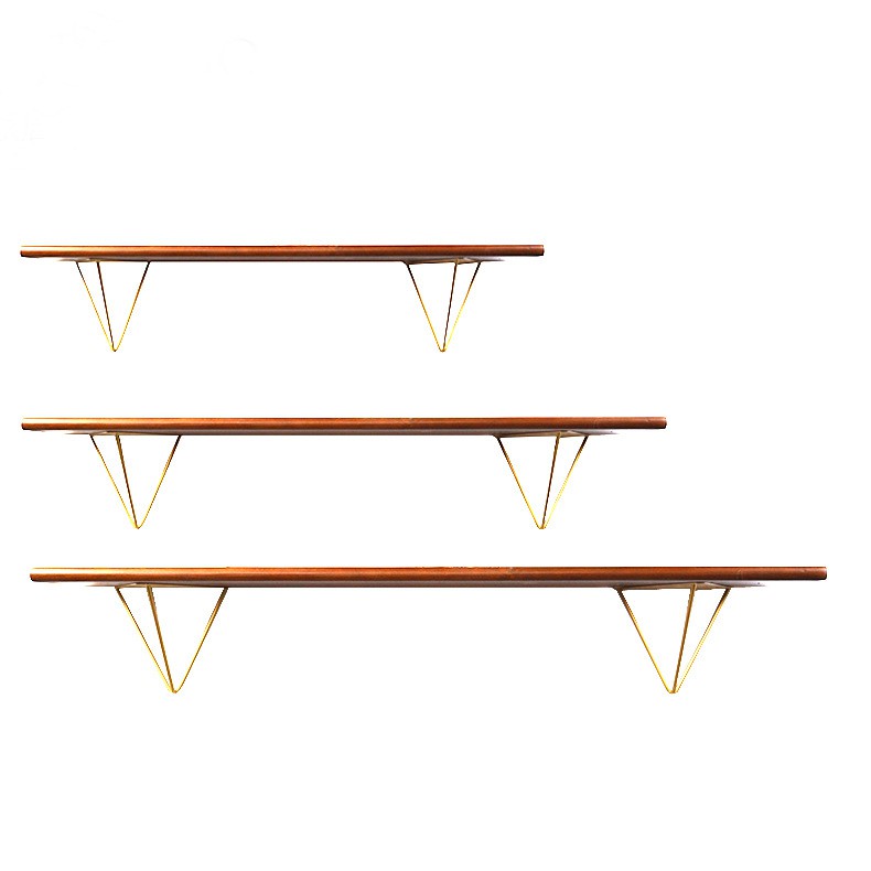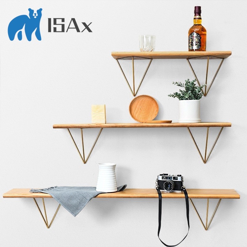 ISAx_Simple and modern wrought iron wall shelf solid wood dining room living room wall creative shelf shelf bookshelf st