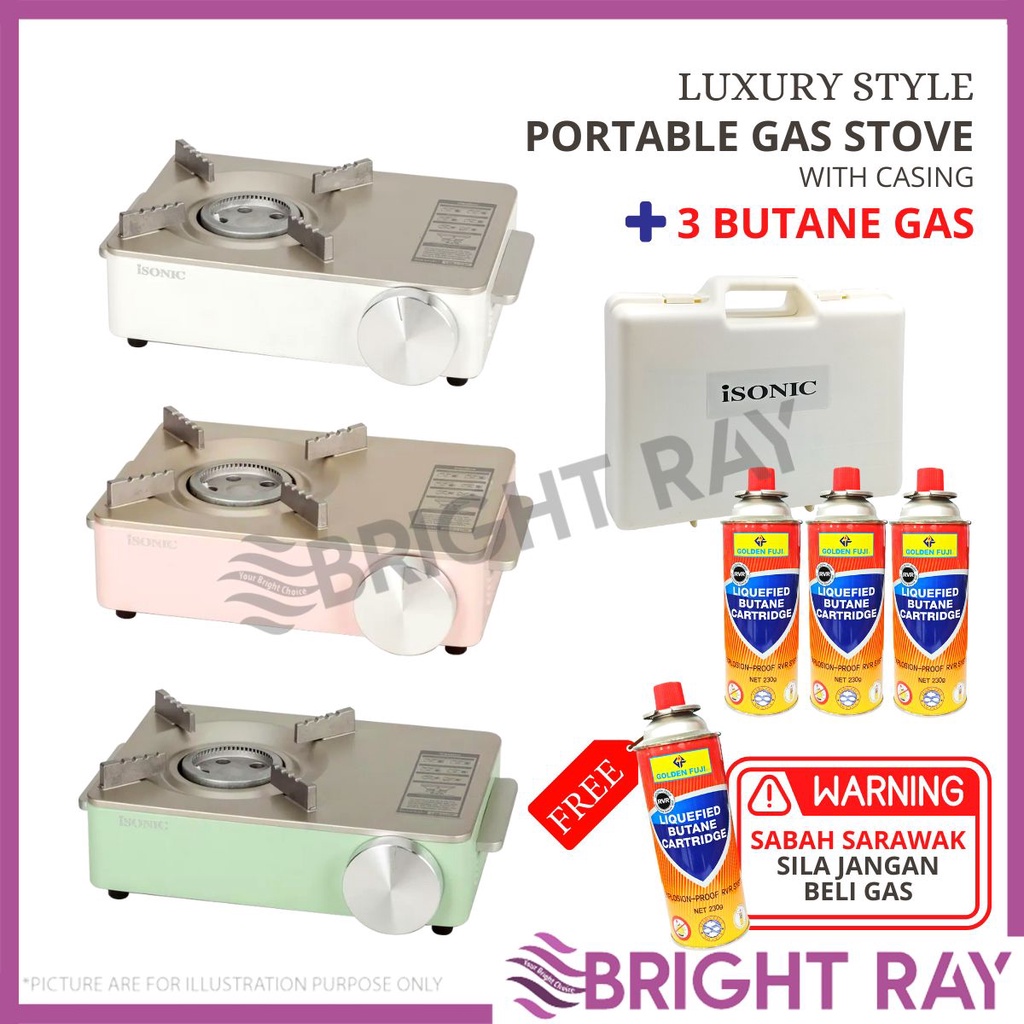 ISONIC LUXURY Style Portable Gas Stove Mini Dapur Gas Outdoor Nordic Style Camping Stove Tungku Dapur Gas Butane Gas