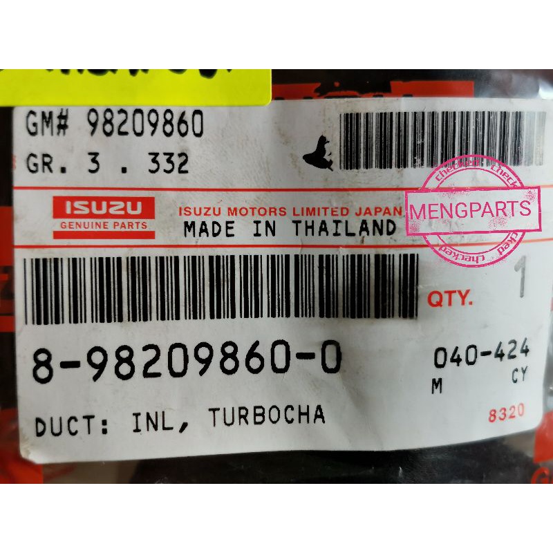 ISUZU DMAX (05' - 18', 3.0cc, 4JJ1) THROTTLE BODY TURBO AIR HOSE PIPE 8-98209-860-0 OEM (ORIGINAL EQUIPMENT MANAFACTURE