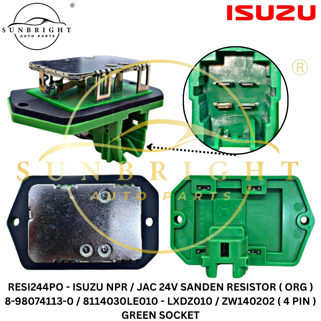 ISUZU NPR / JAC 24V SANDEN RESISTOR ( ORG ) 8-98074113-0 / 8114030LE010 - LXDZ010 / ZW140202 ( 4 PIN ) GREEN SOCKET