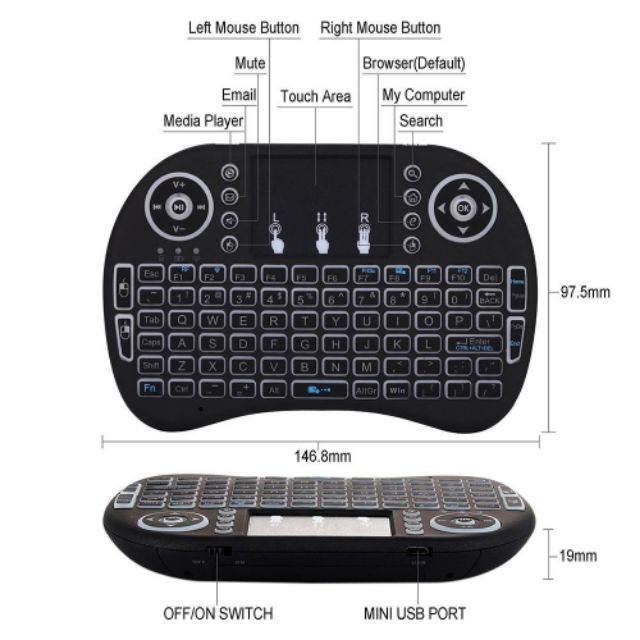 ITRONIC i8 Keyboard Air Mouse Touchpad Rechargeable And AAA Battery Mini Keyboard Remote TV Box