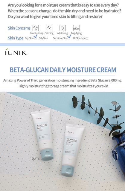 IUNIK Beta Glucan Daily Moisture Cream 15ml/60ml