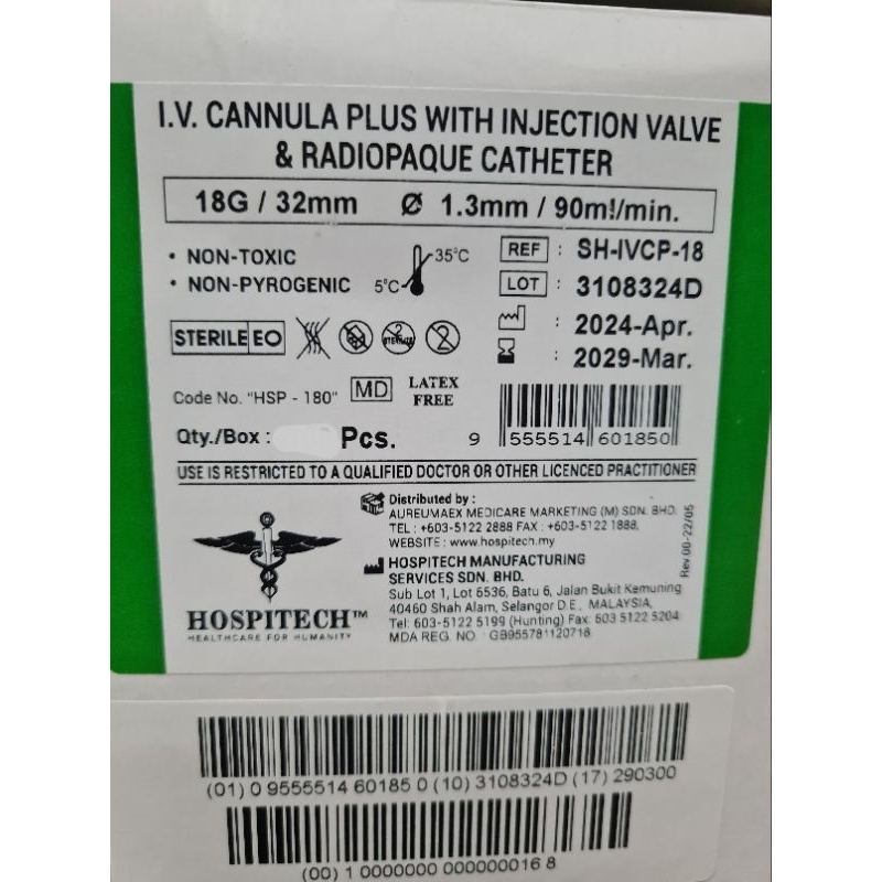 IV Catheter Cannula with Injection Valve 20G 22G 24G Pink Blue Yellow 50pc/Box