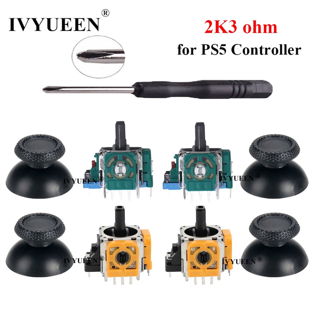 IVYUEEN 2 Sets for PlayStation 5 PS5 DualSense Controller 3D Analog Stick Sensor Module Potentiometer Thumbsticks Caps