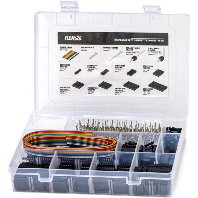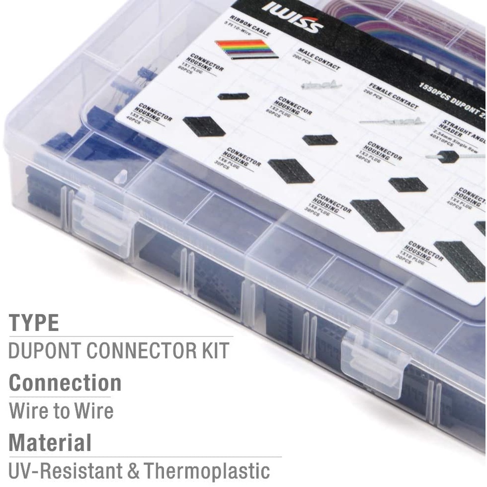 IWISS 1550PCS 2.54mm Pitch Wire-to-Wire Dupont Connector Kit, includes Pin Headers, Jumper Wire, Crimp Pins