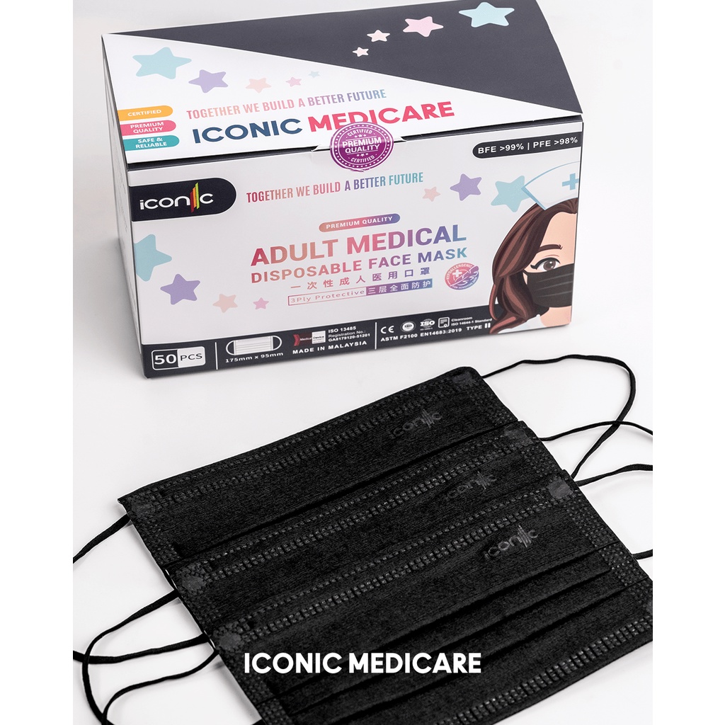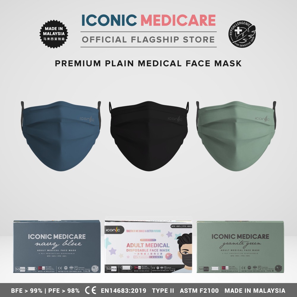 Iconic 3 Ply Medical Face Mask - Plain (50pcs)