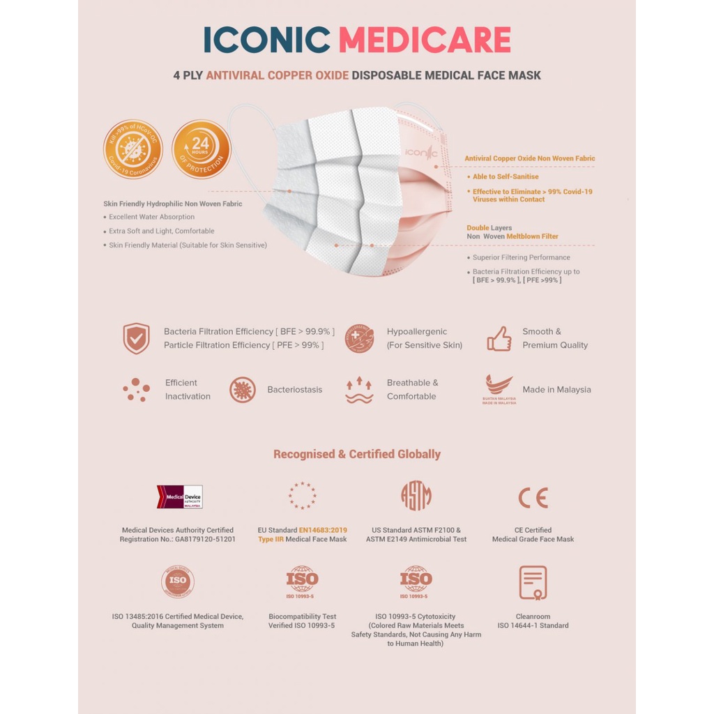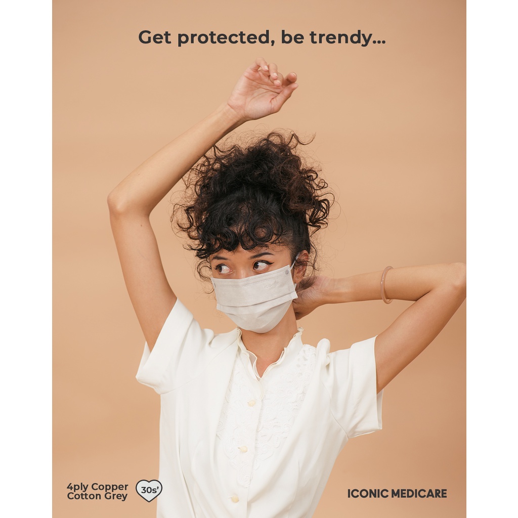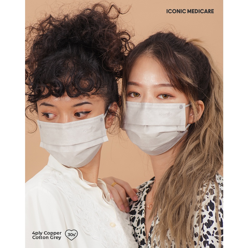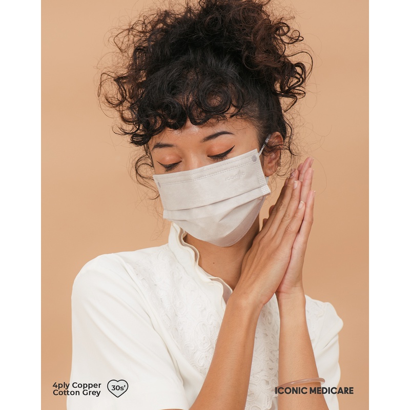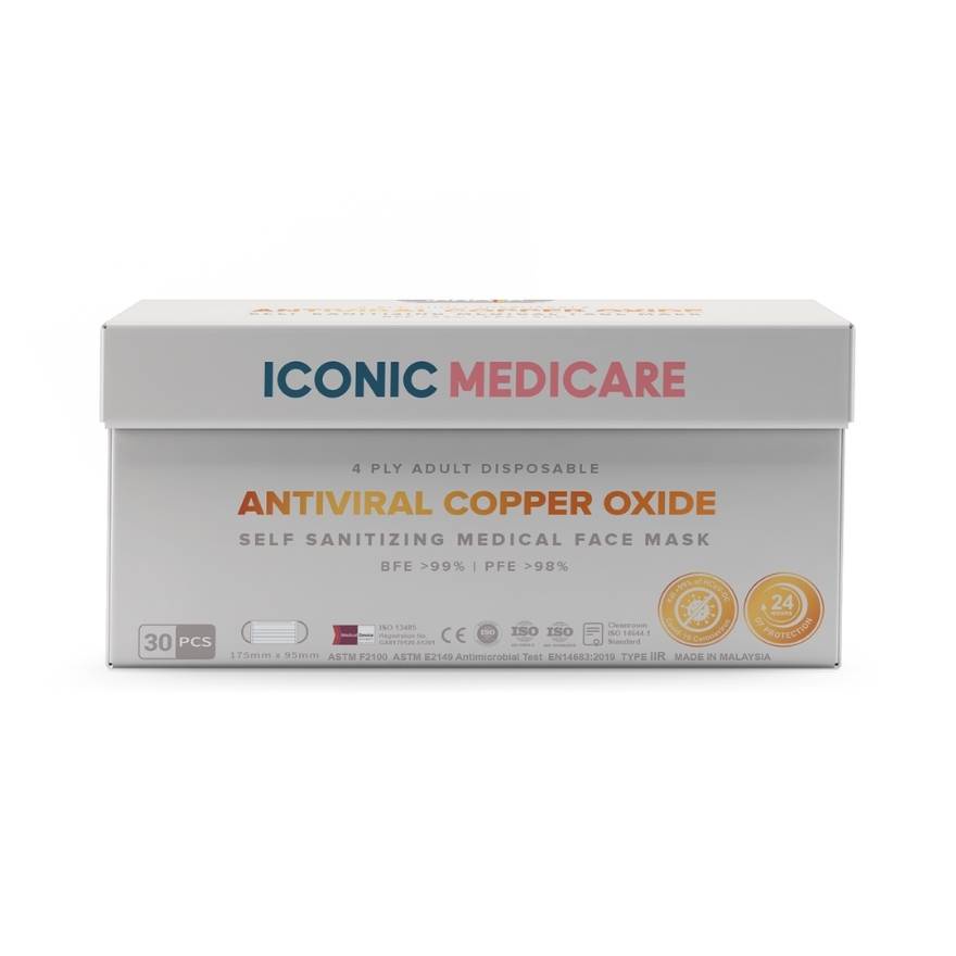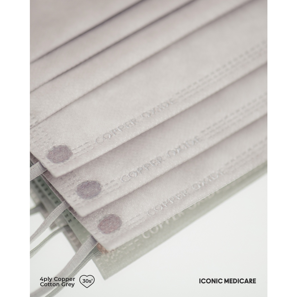 Iconic Medicare 4 Ply Adult Disposable Antiviral Copper Oxide Self Sanitizing Medical Face Mask - Copper Grey