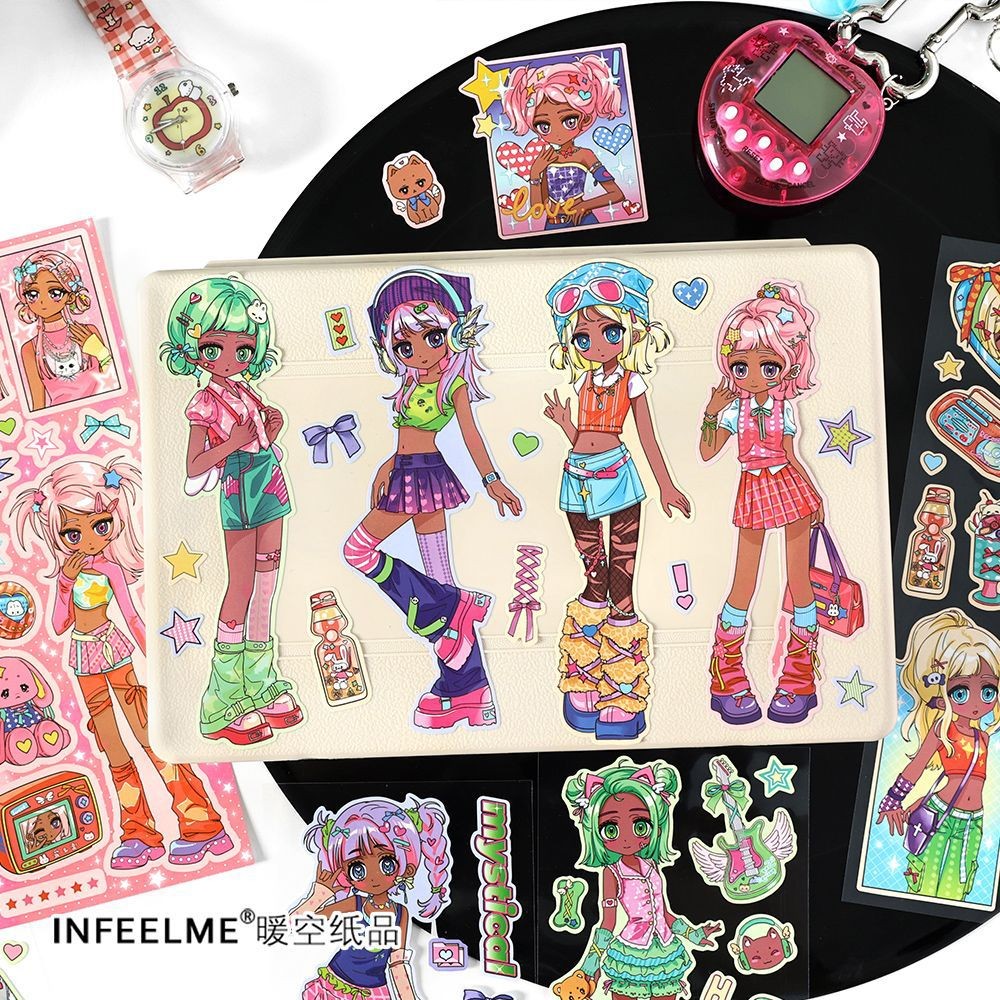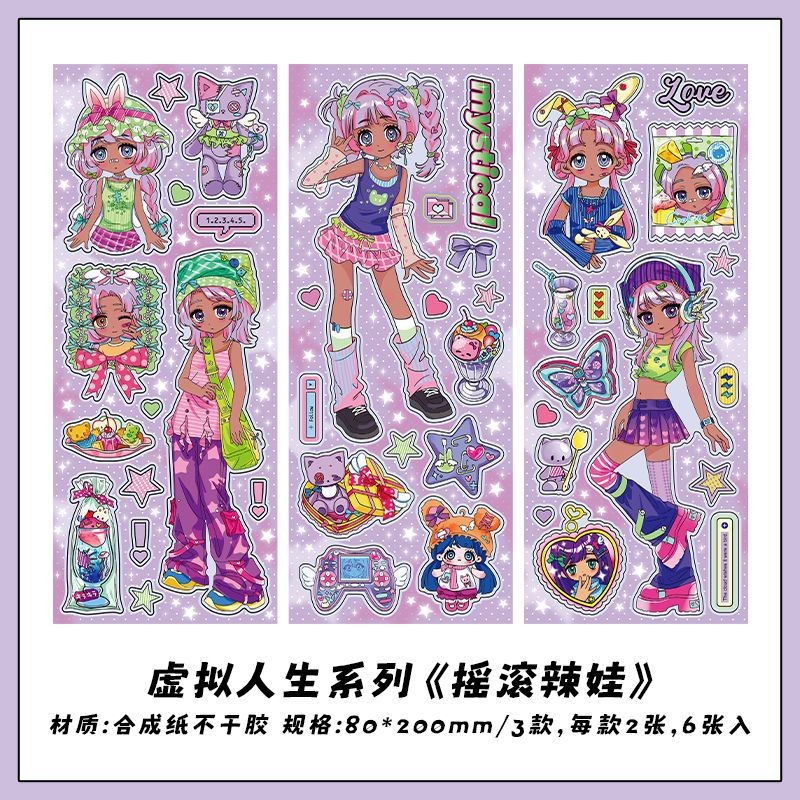 Idako [Virtual Life Series] Adhesive Six-Segment Pack Long Tape Cute Character Handbook Tape SS205