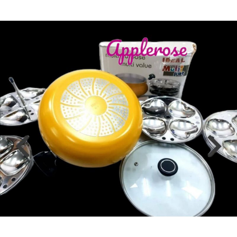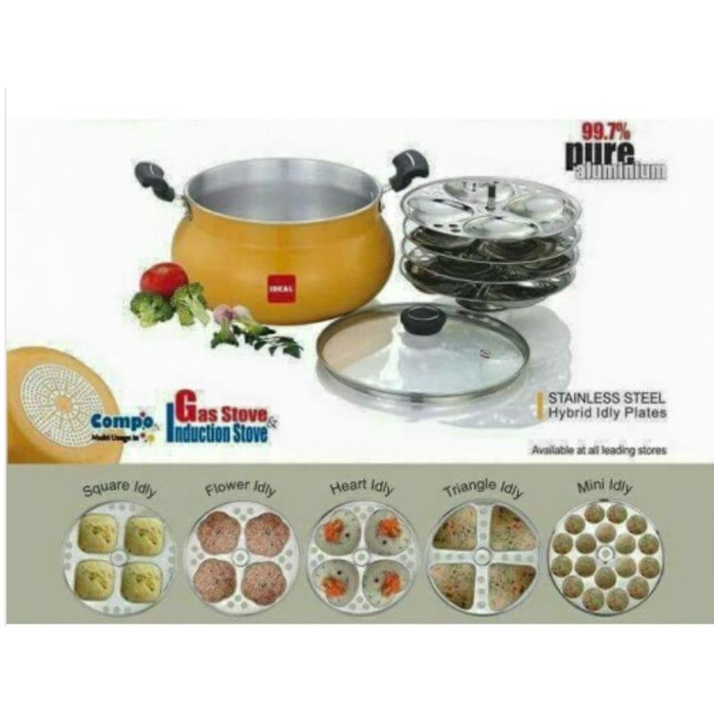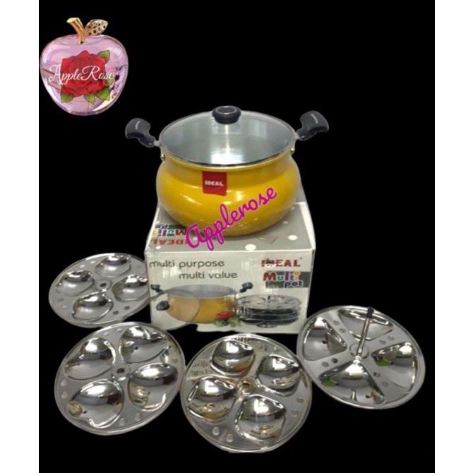 Ideal Stainless steel idly paaCombo Multipot and Glass Lid with Stainless Steel Hybrid Idly Pot For Induction (Yellow)