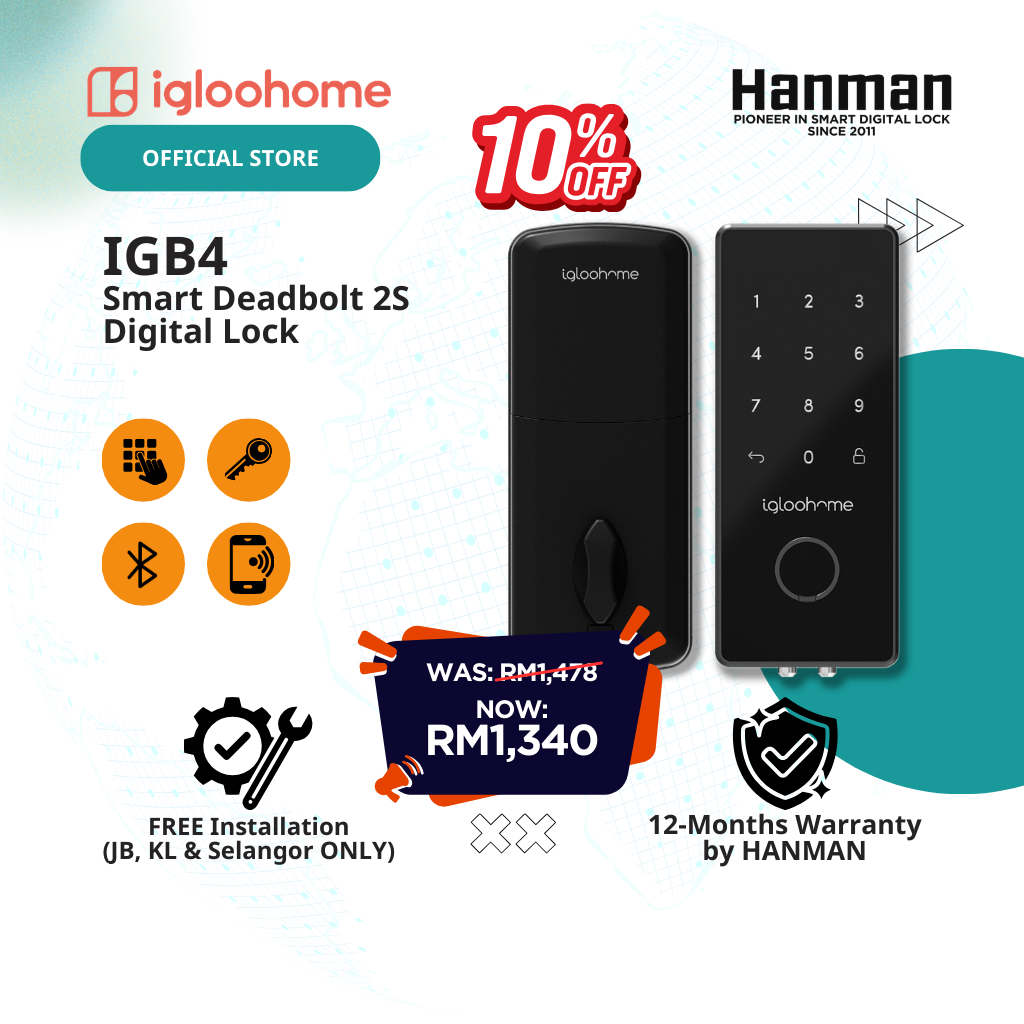 Igloohome IGB4 | Smart Deadbolt 2S Digital Door Lock | 1-Year Warranty | *FREE Installation (JB, KL & Selangor)