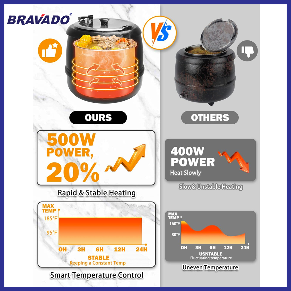 BRAVADO Commercial Electric Soup Warmer (10L) | Kettle Warmer | Pemanas Sup | 1 YEAR WARRANTY | MALAYSIA 3-PIN PLUG