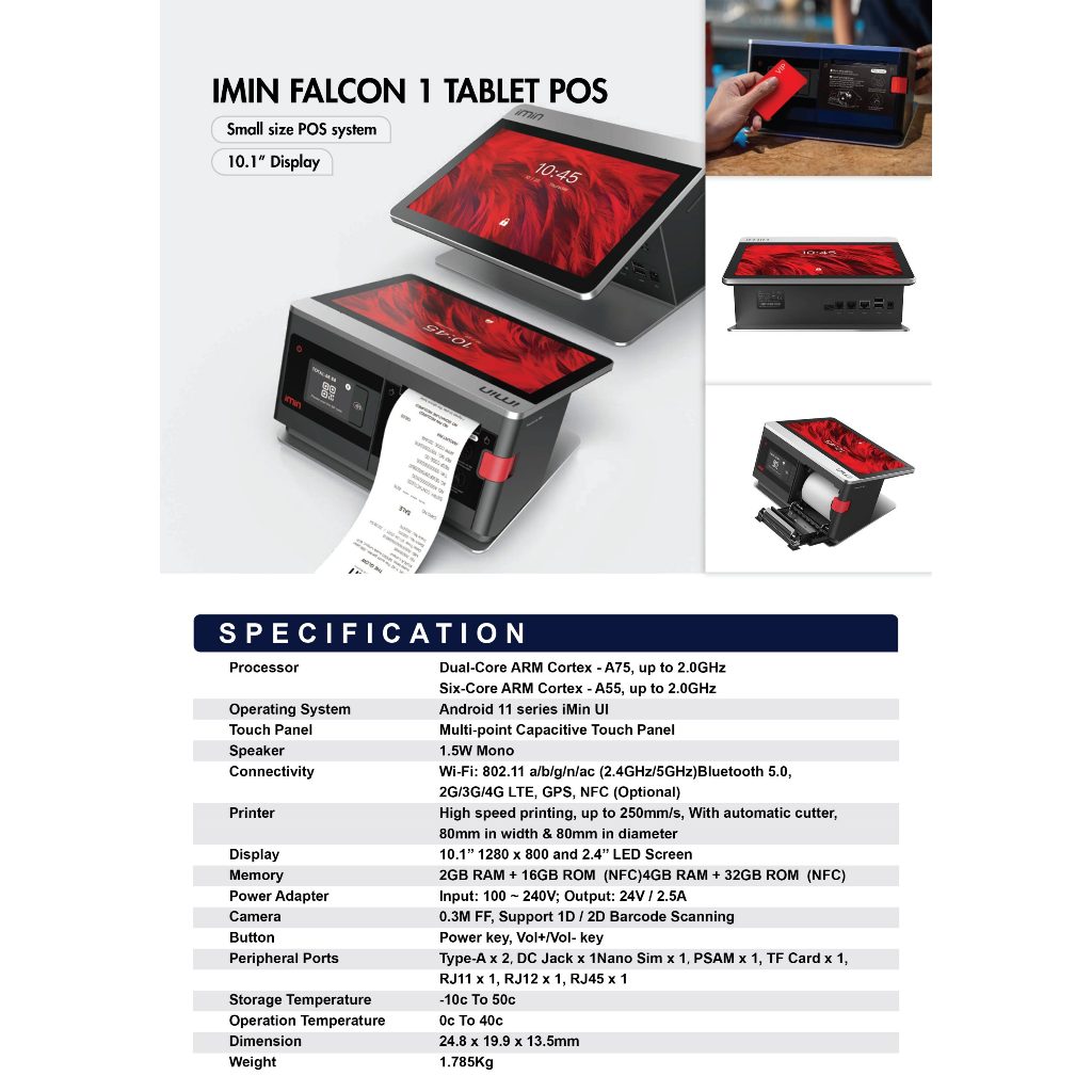 Imin Falcon 1 All in One Tablet POS Desktop Terminal with 80mm Printer 2+16GB / 4+32GB