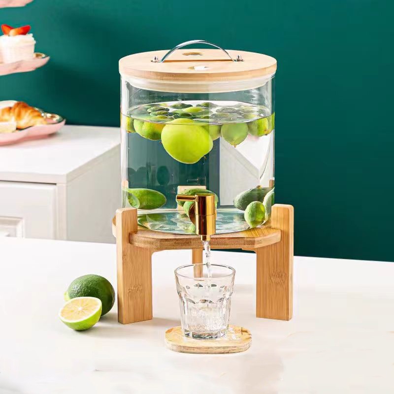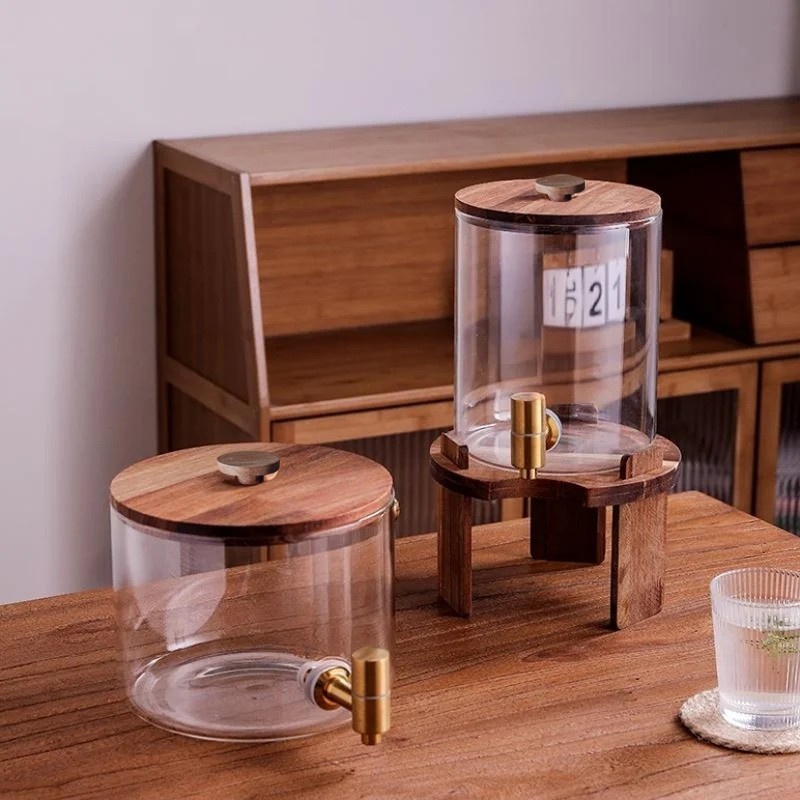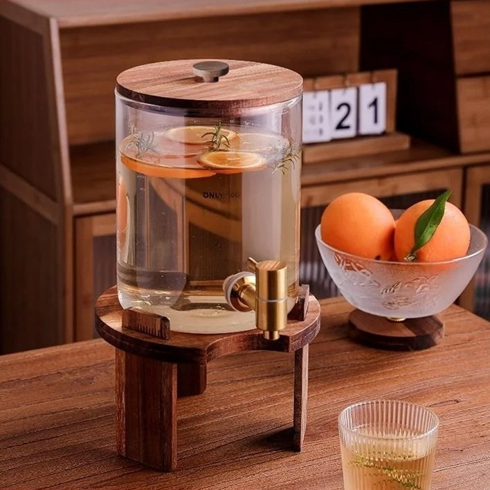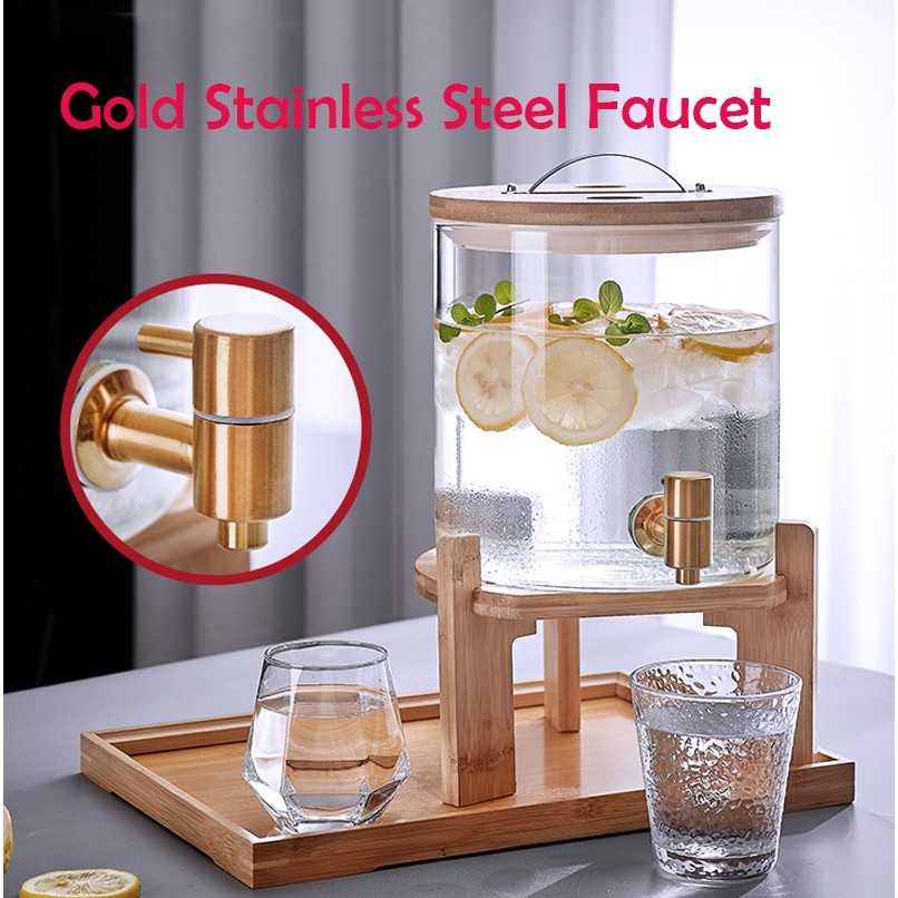 Hwhome Glass Beverage Dispenser with Gold Stainless Steel Spigot – Wide Mouth, Easy to Fill, Ideal for Cold Drinks