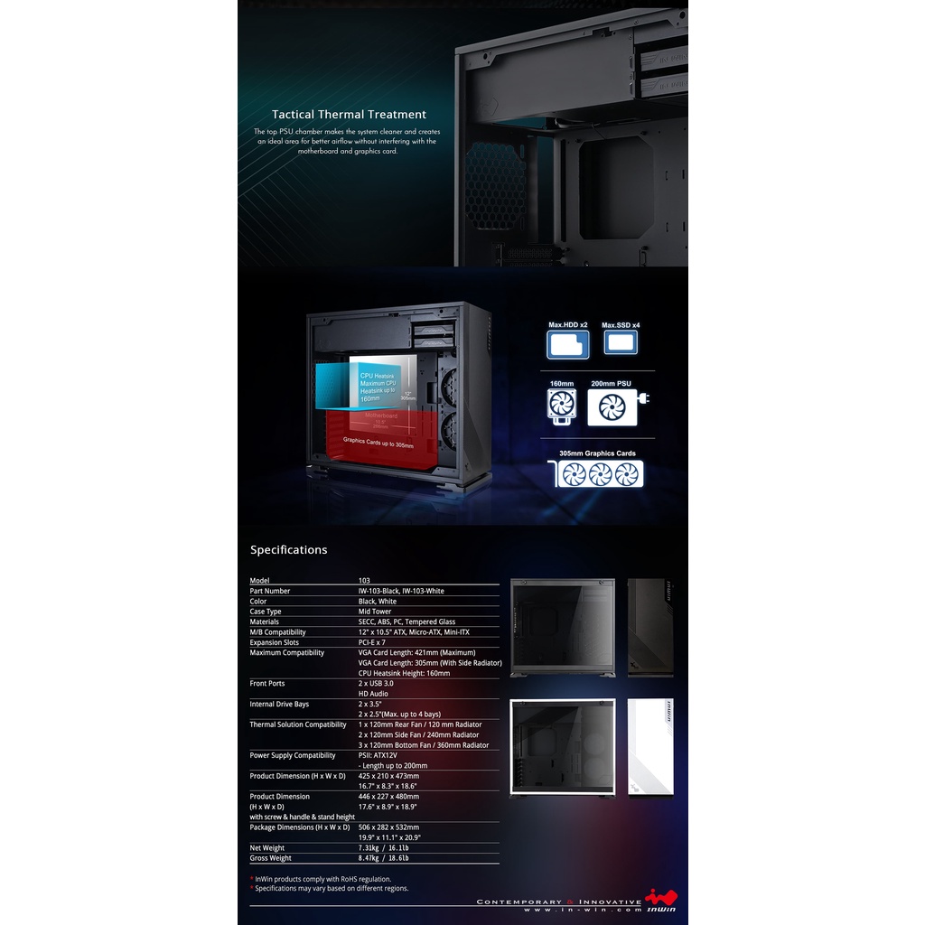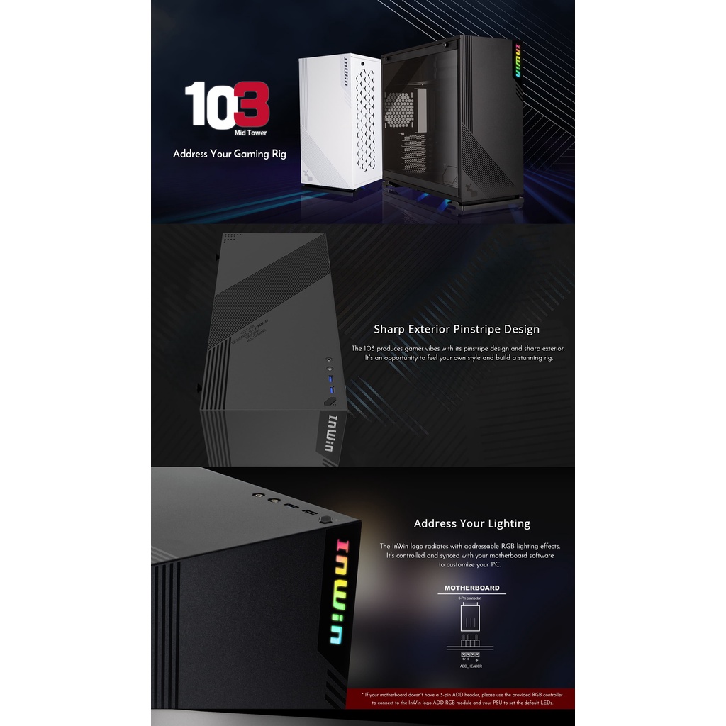 InWin 103 ARGB Mid Tower Chassis ATX TG PC Gaming Case - Tempered Glass, ATX case