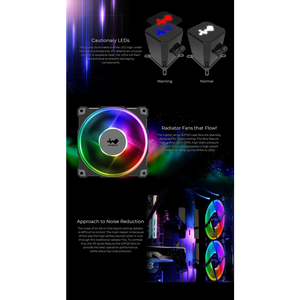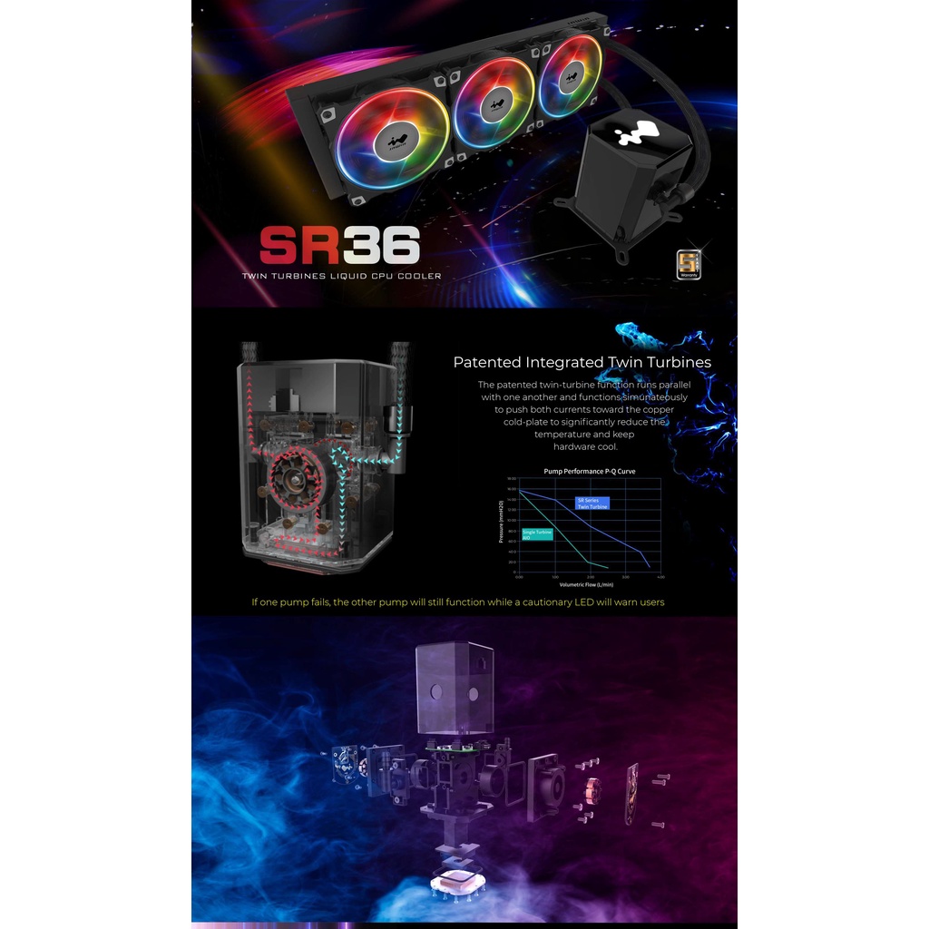 InWin AIO SR36/SR24 Twin Turbine ARGB 360mm/240mm Liquid Cooler for AMD / Intel with Addressable RGB Controller