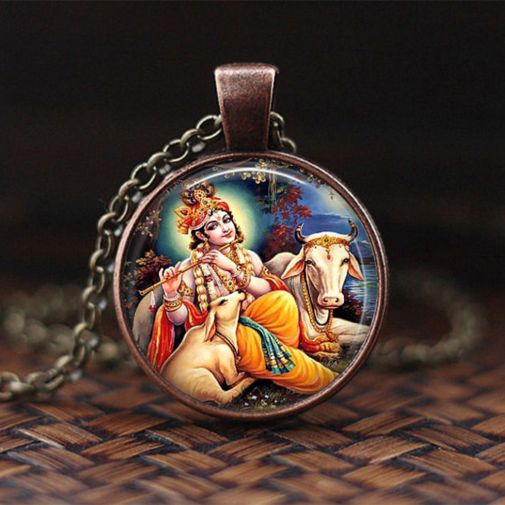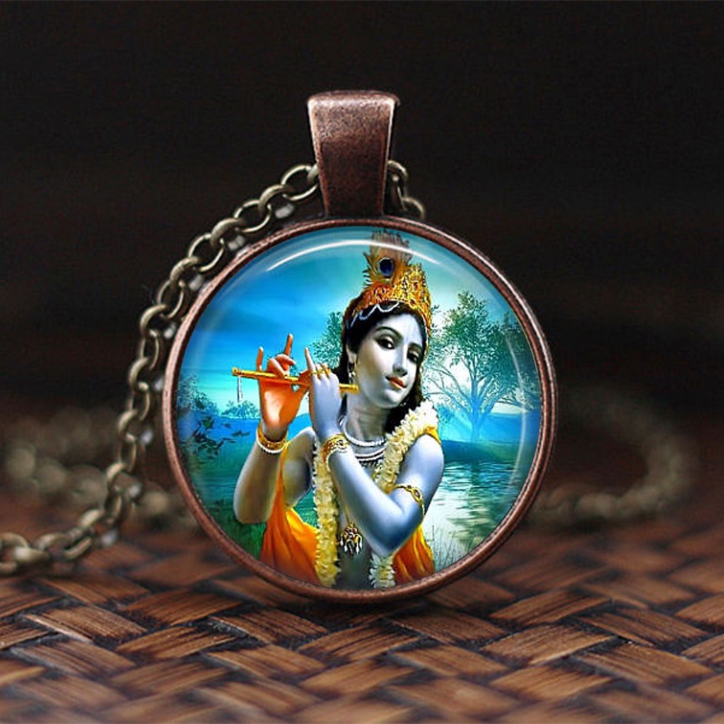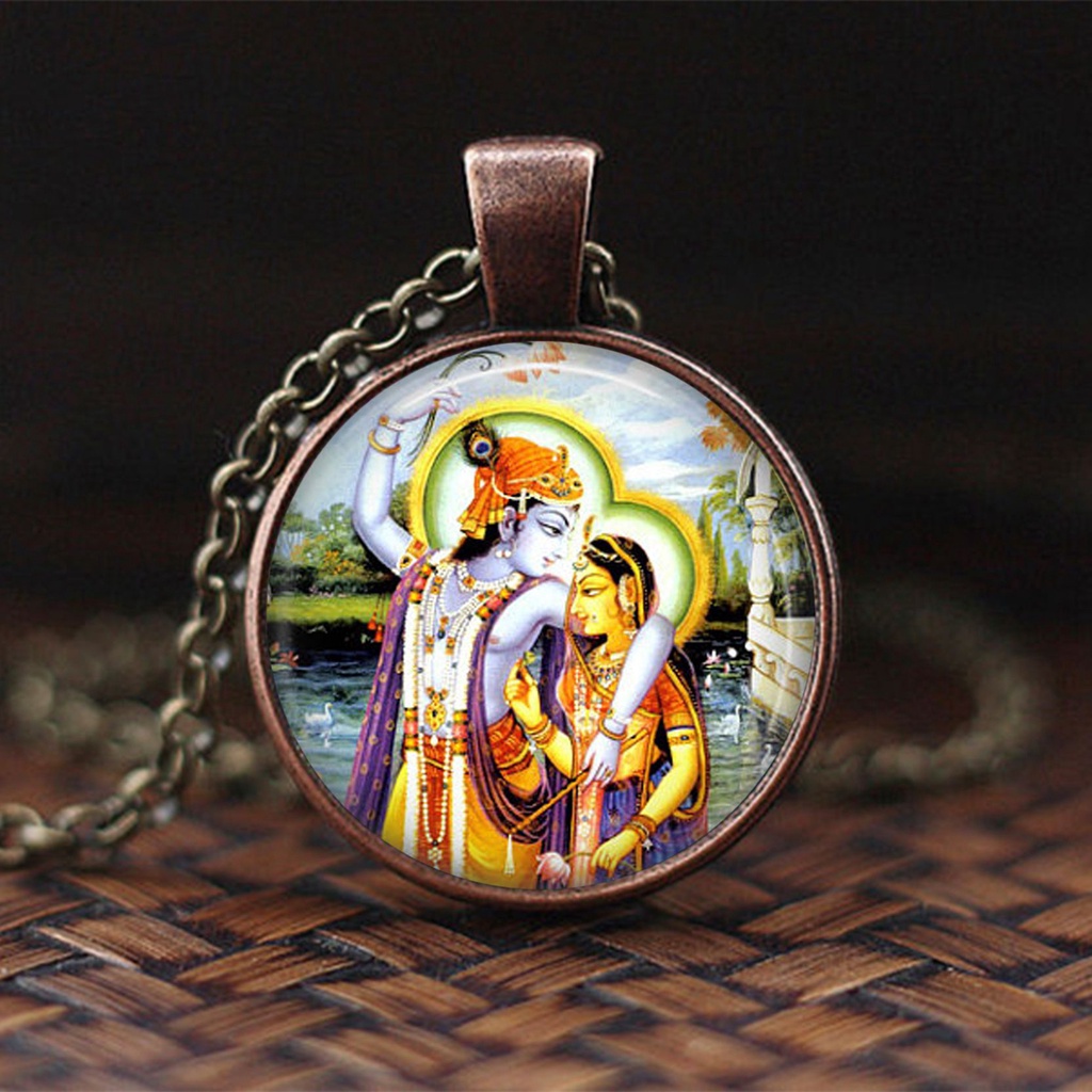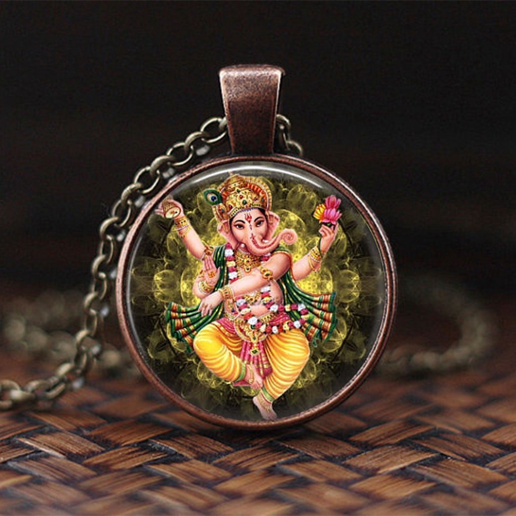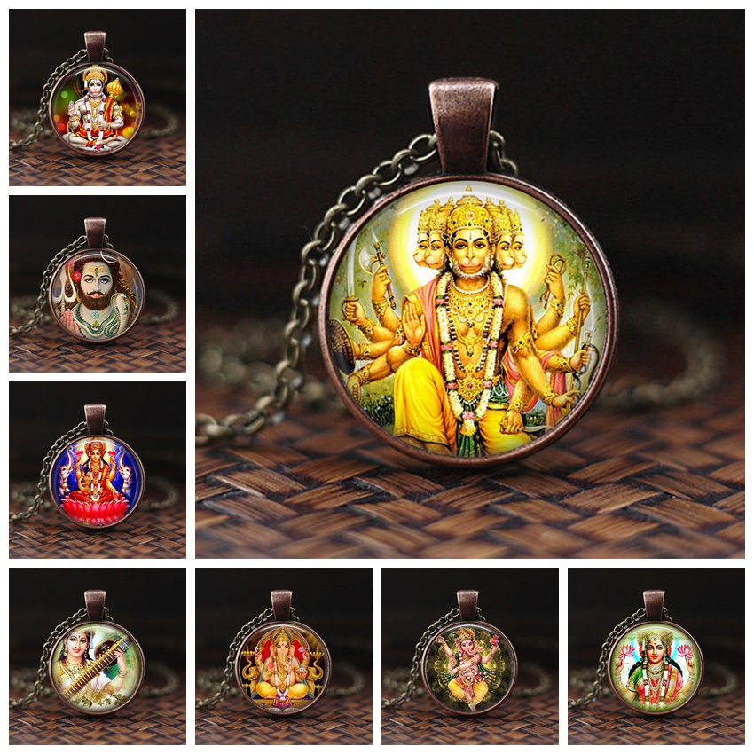 India Religion Necklace God Brahma Lord Shiva Vishnu Jewelry Glass Cabochon Pendant Choker Necklaces Religion Jewelry