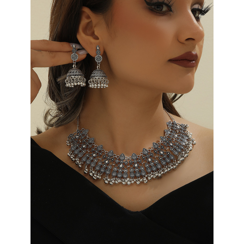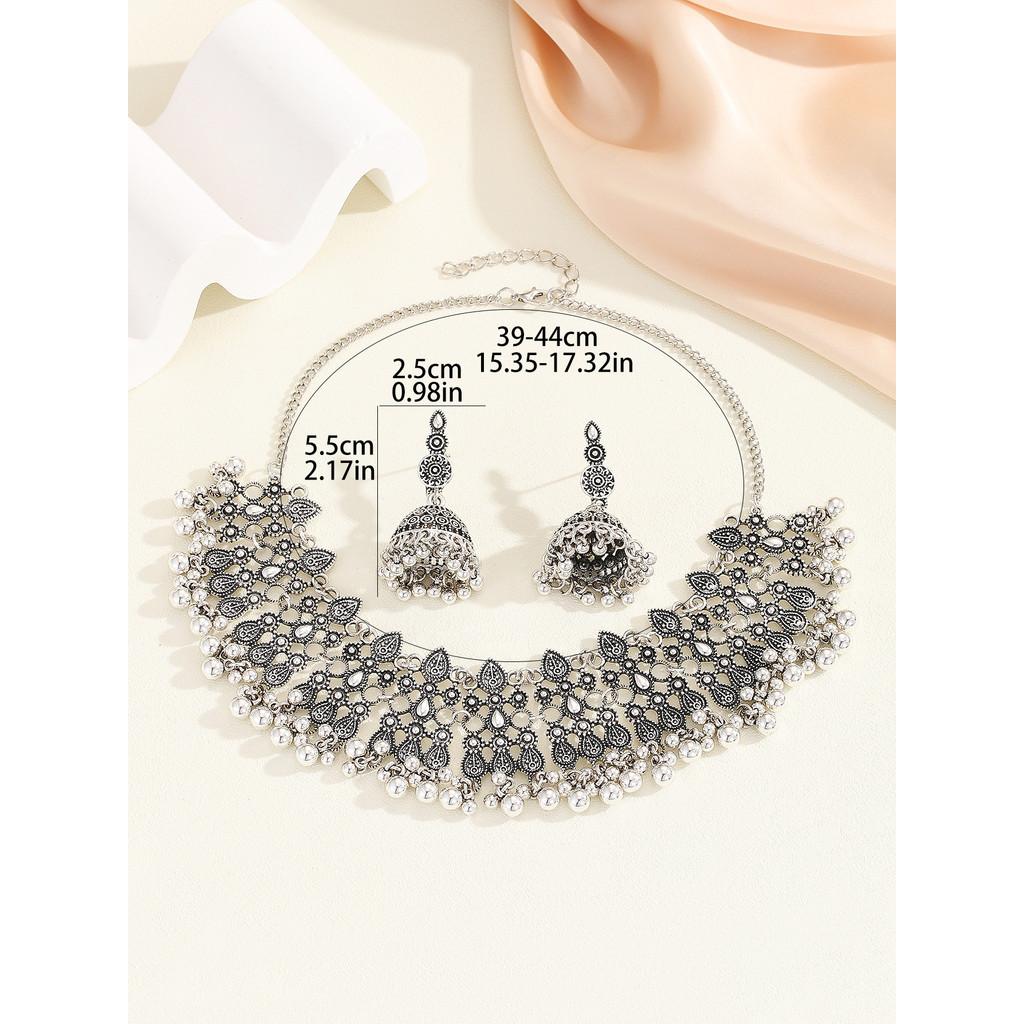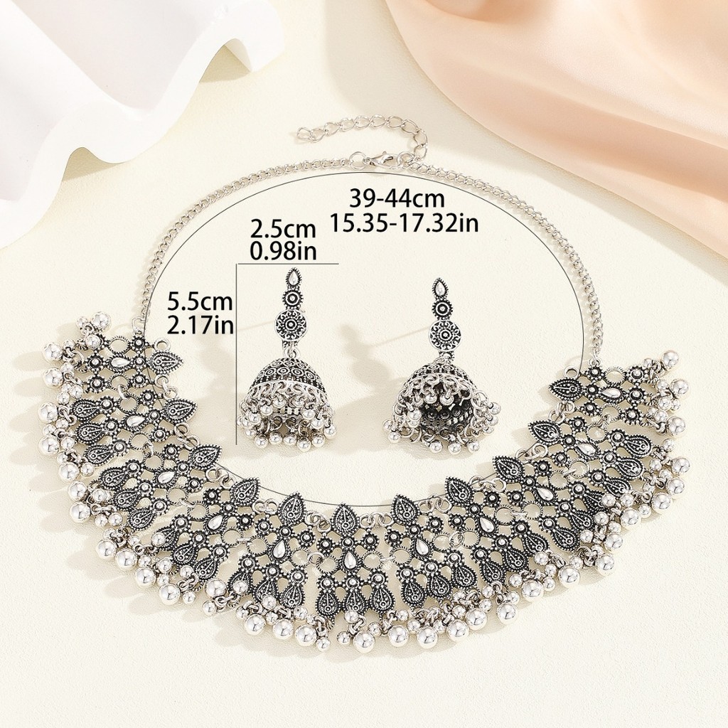 Indian Container Accessory Set, jhumka Style, vintaj Fashion, Bohemian Cutout, Two sut, Gem Necklace and Earrings, eropah and ame Style
