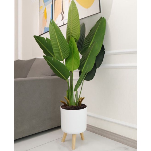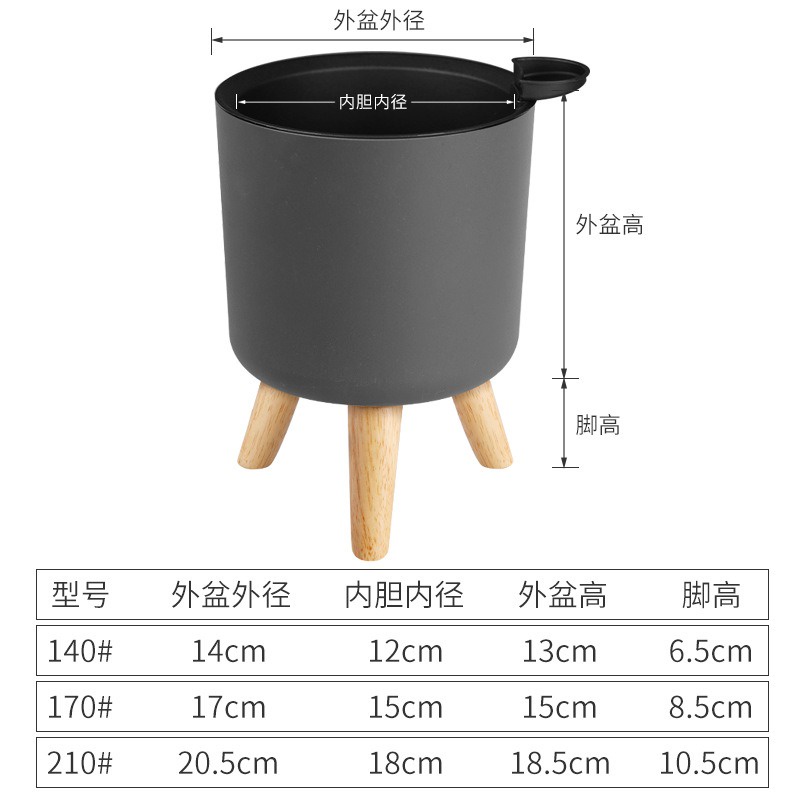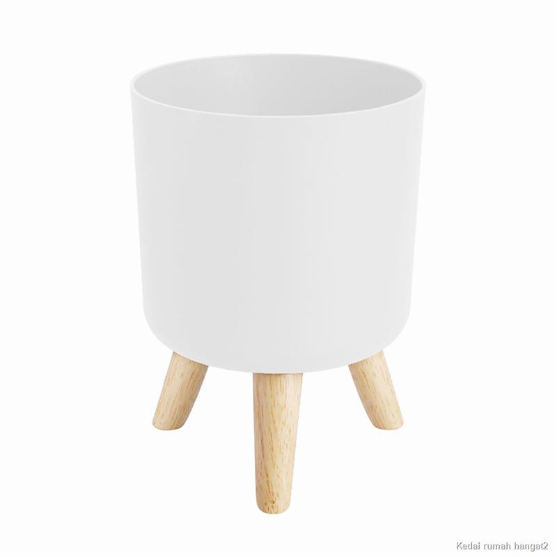 Indoor Outdoor Planter Green Plant Flower Pot with Wooden Legs Stand Floor Standing White Plant Pots for Bedroom Balcon