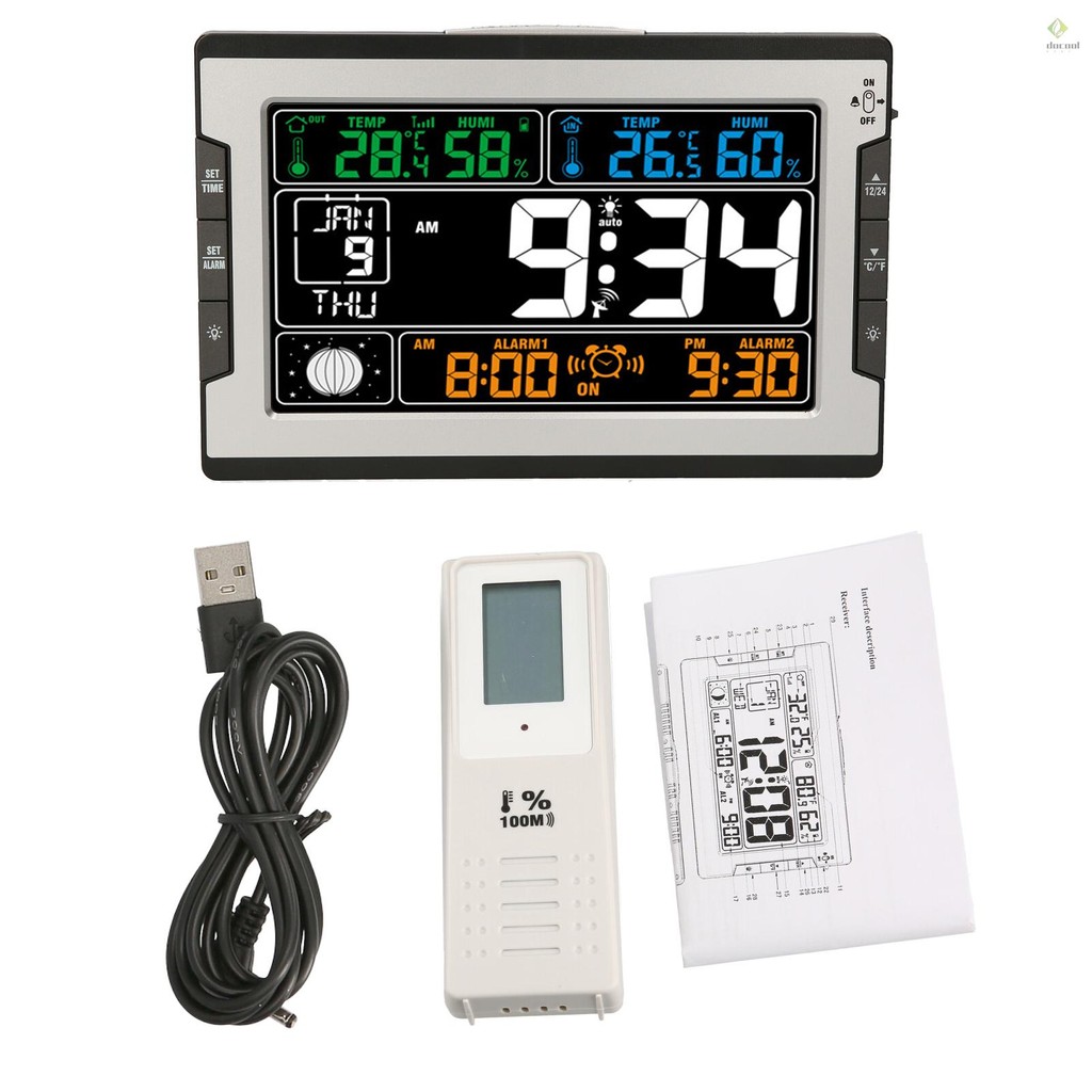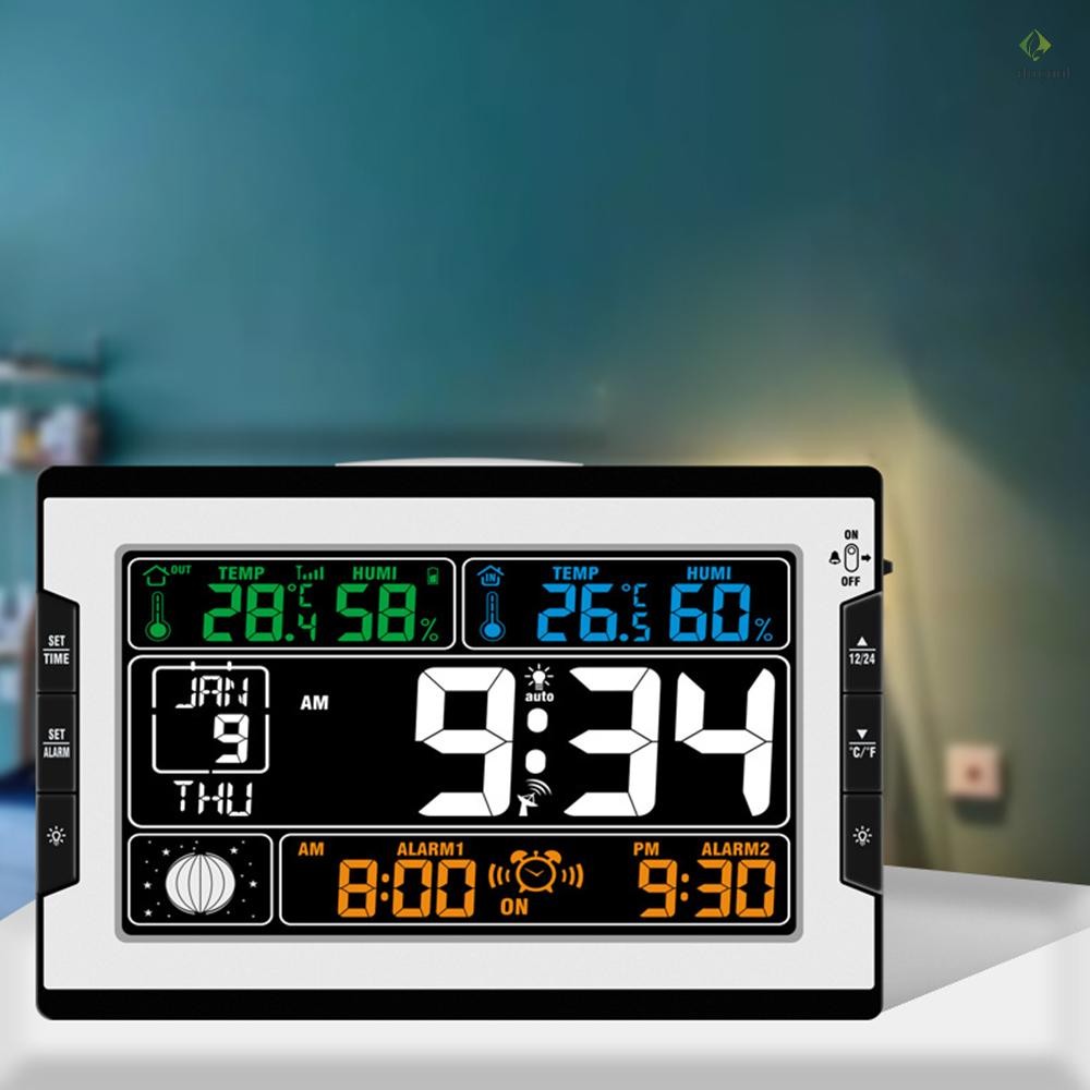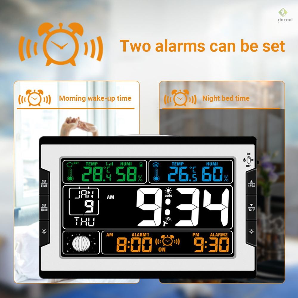 Indoor&Outdoor Temperature Humidity Digital Multifunctional Clock & Thermo-Hygrometer Thermometer & Hygrometer Large Color Display with Backlight with Perpetual Calendar Moon Phase