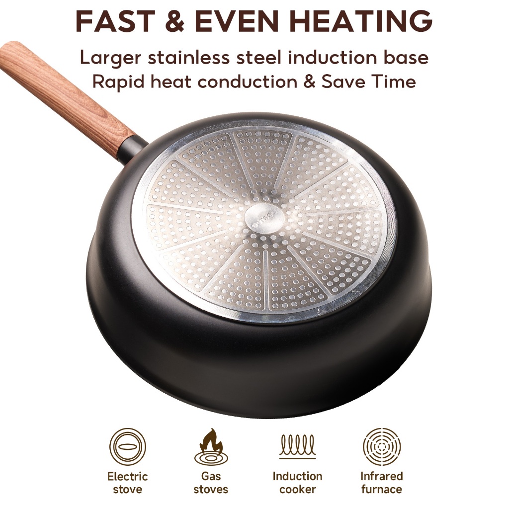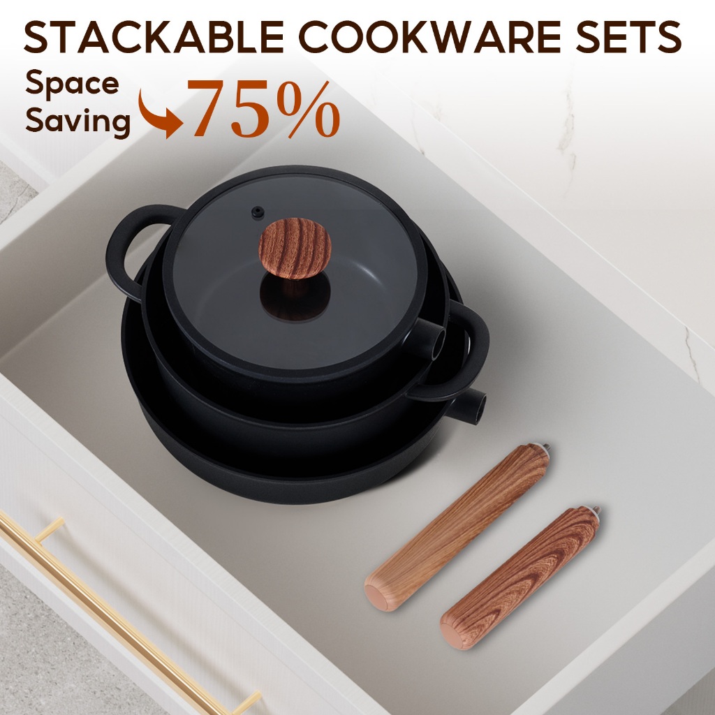 JEETEE 7Pcs Non Stick Cookware Set with lid Induction & Gas Compatible PFOA& PFAS& PTFE Free