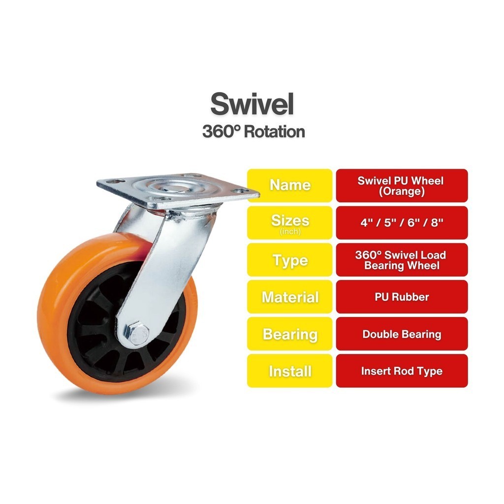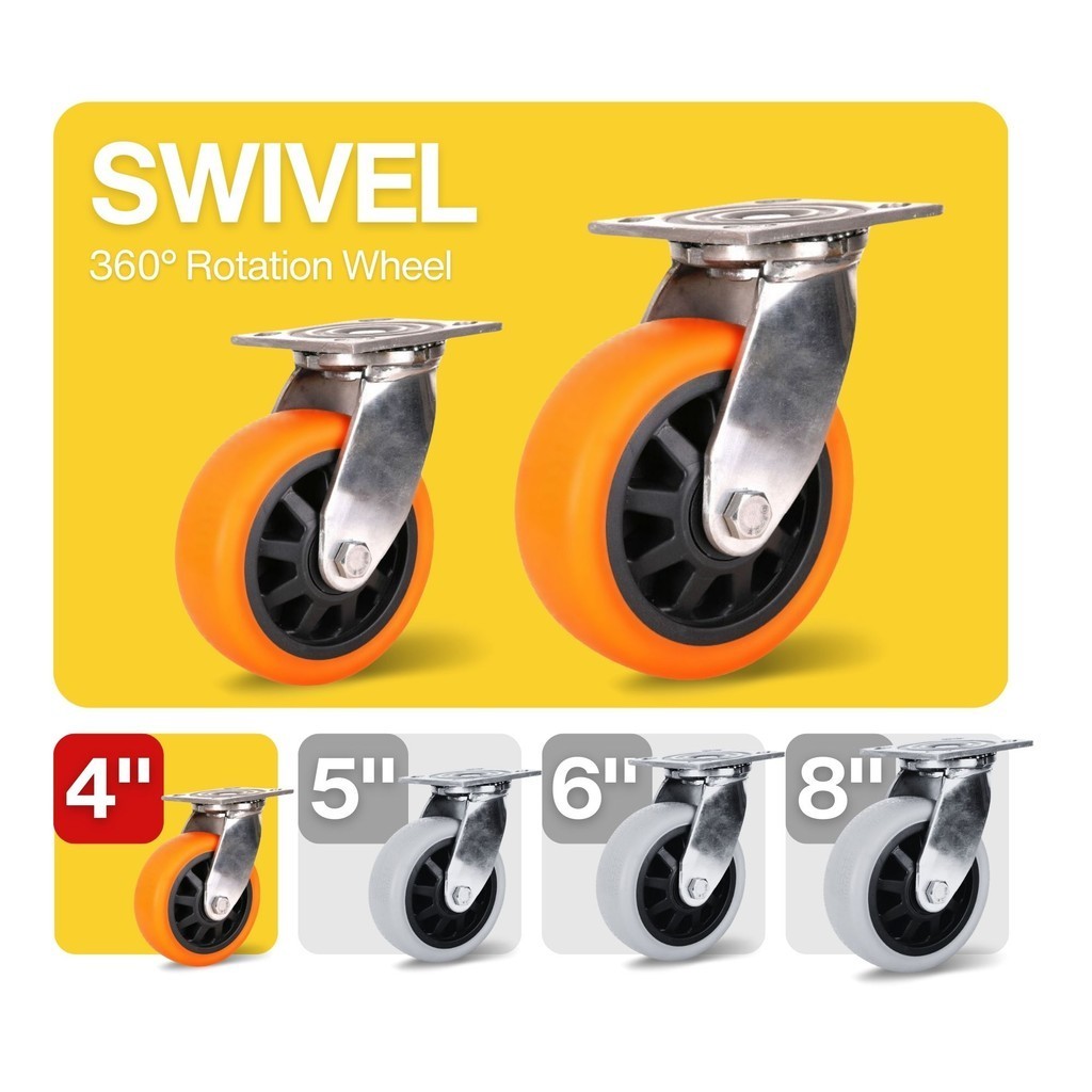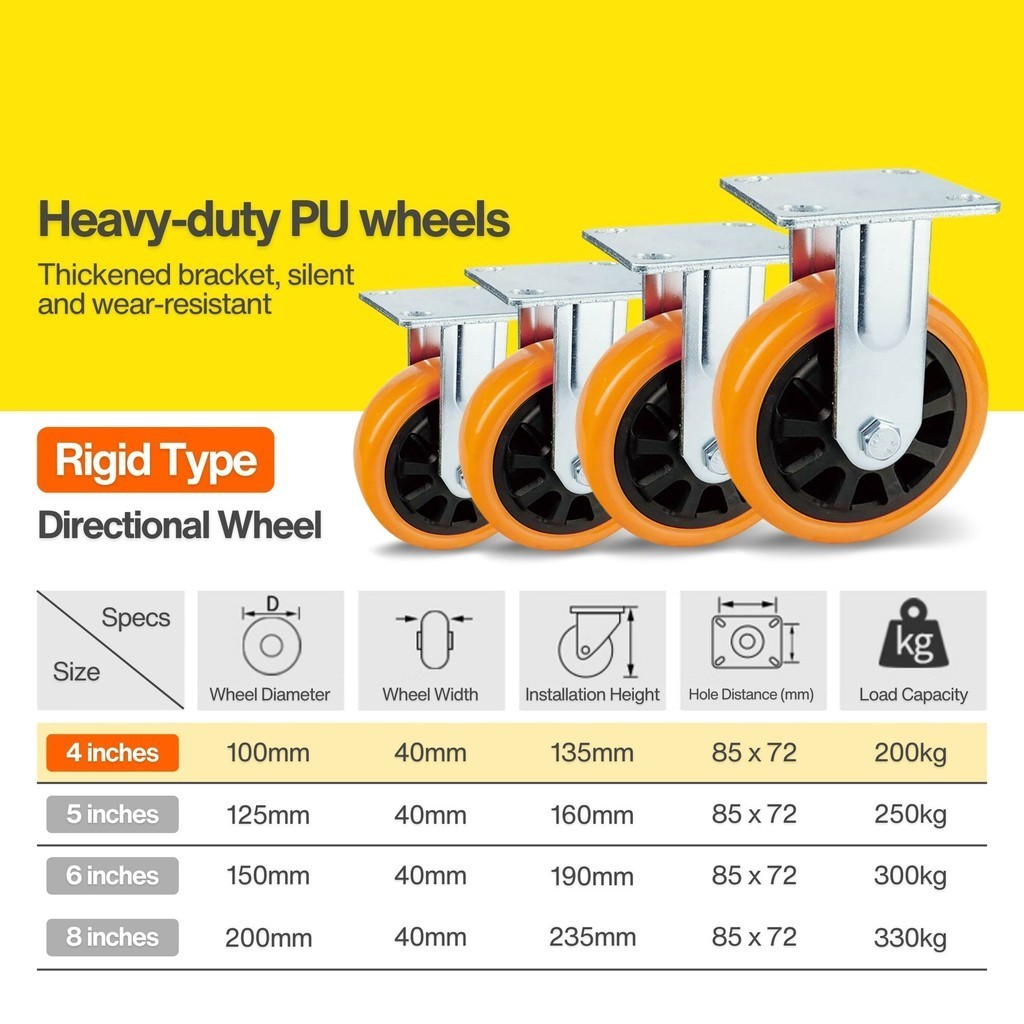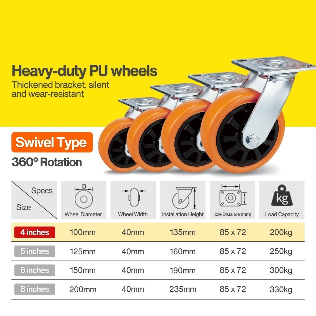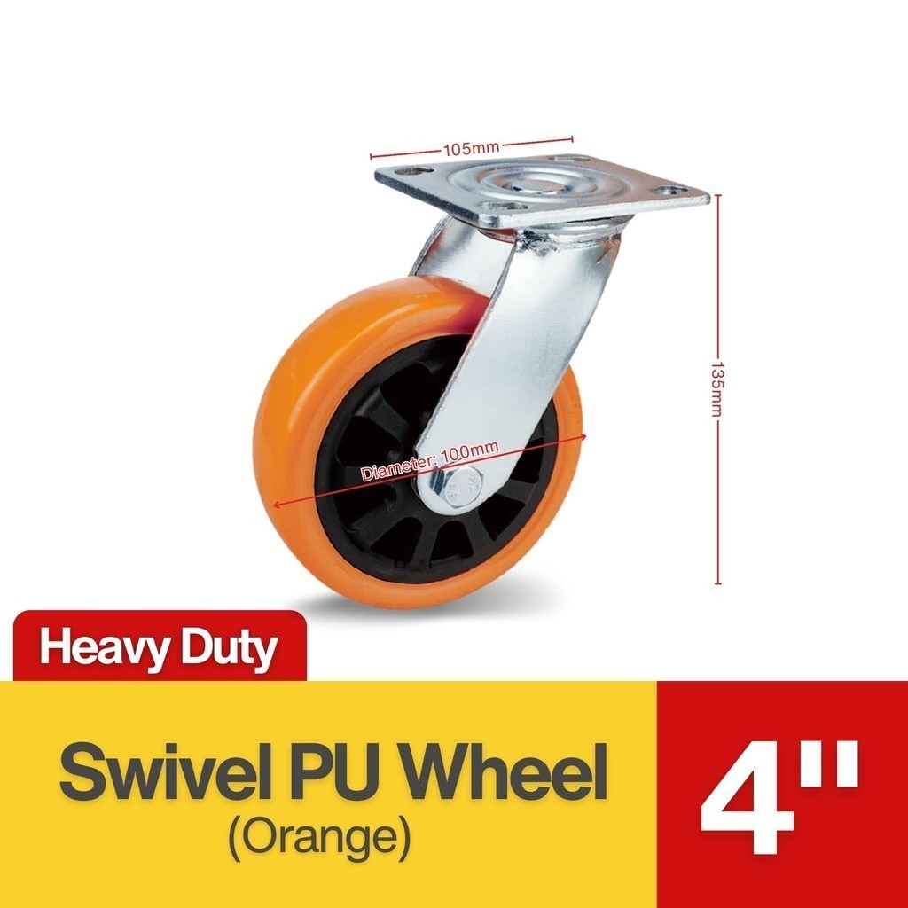 Industrial Professional Heavy Duty Caster 4 in / 100mm PU Wheel Swivel Rigid Wheel Trolley Push Cart Flexible Roda Getah
