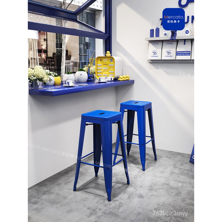 Industrial Style Oil Drum Bar Table and Chair Combination Klein Blue Bar Stool Wrought Iron Bar Chair Dessert Juice Shop