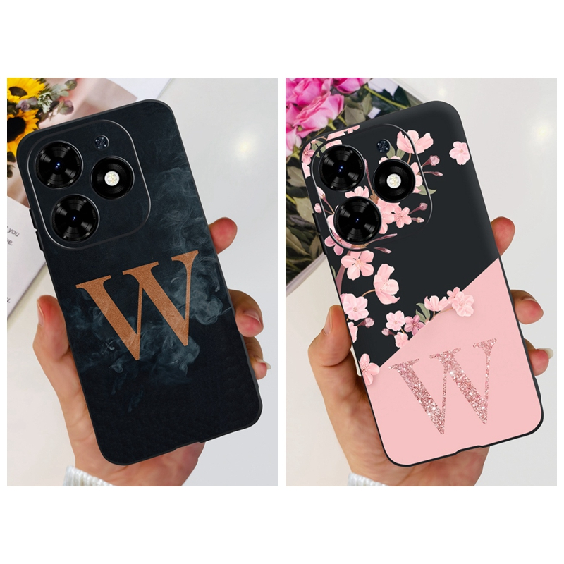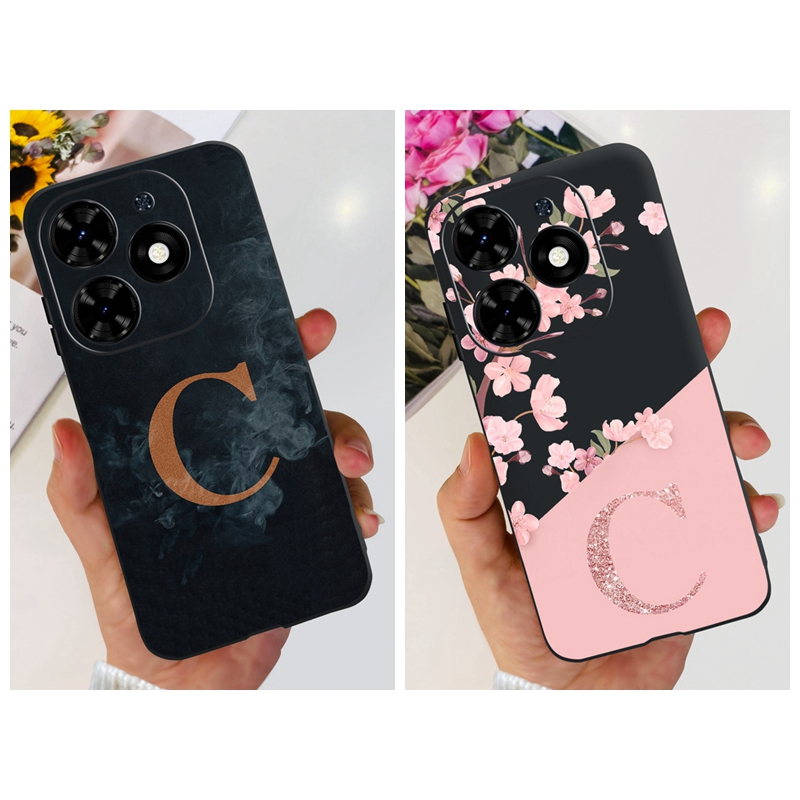 Infinix Smart 8 X6525 Beautiful Flower Fog Initial Letter Case Infinix Smart8 Soft Silicone TPU Phone Cases