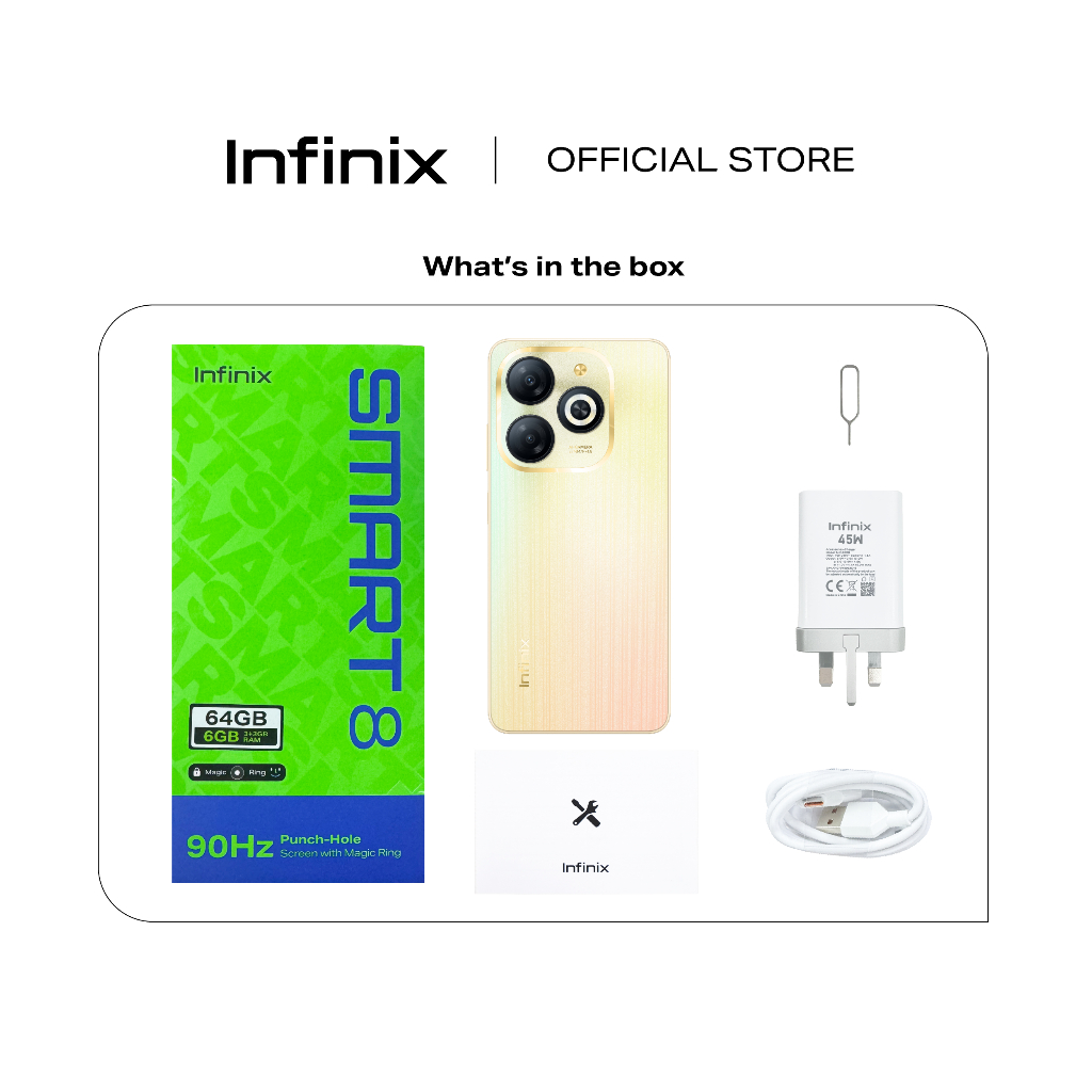 Infinix Smart8 (64GB + up 6GB RAM) 90Hz Hole Display 5000mAh Battery 200% Super Volume DTS Mobile Mic Smartphone Wifi